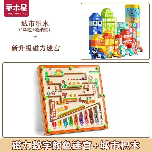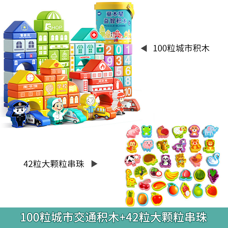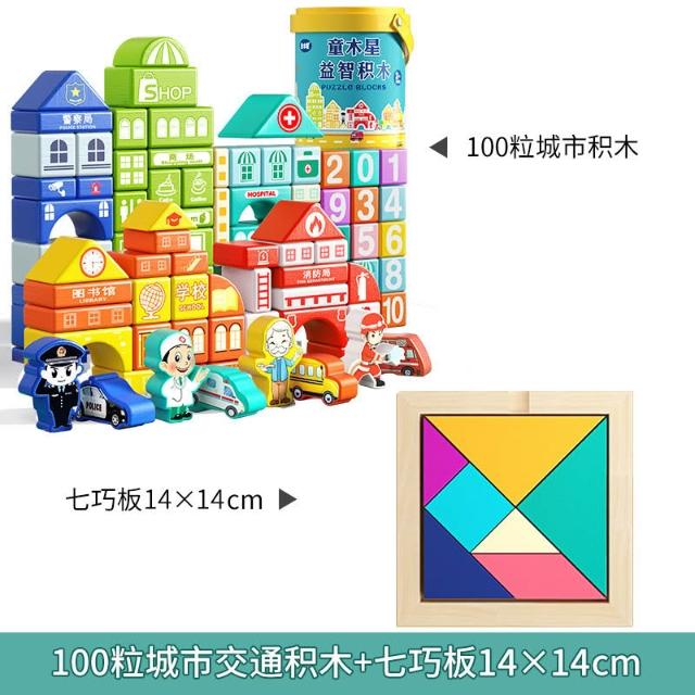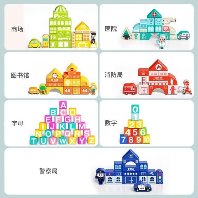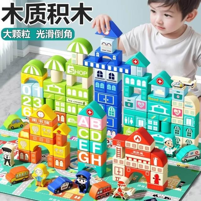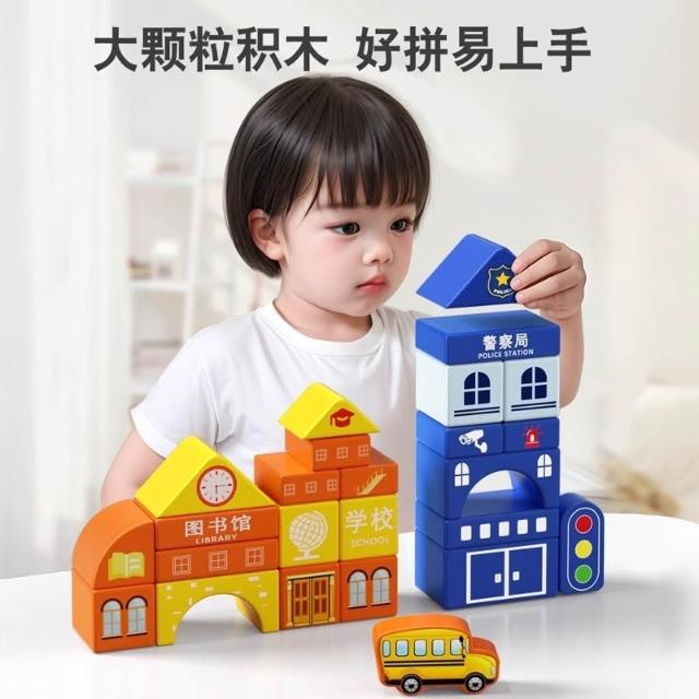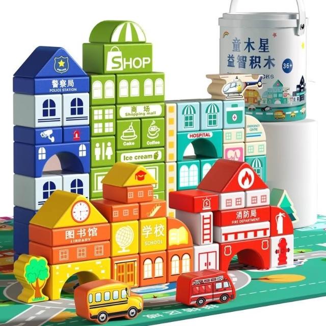 兒童積木蒙氏早教拼裝疊疊樂幼兒園寶寶益智3到6歲男女孩街景玩具