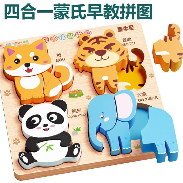 兒童益智拼圖開發智力動腦寶寶3到6歲啟蒙大顆粒立體拼板環保材質