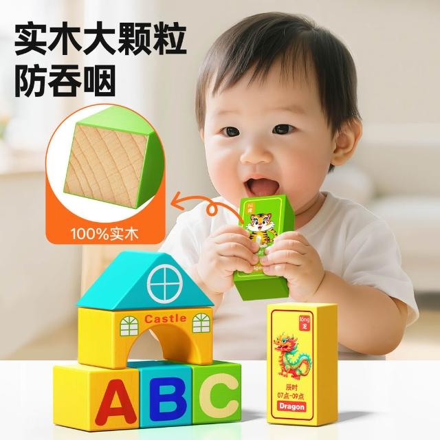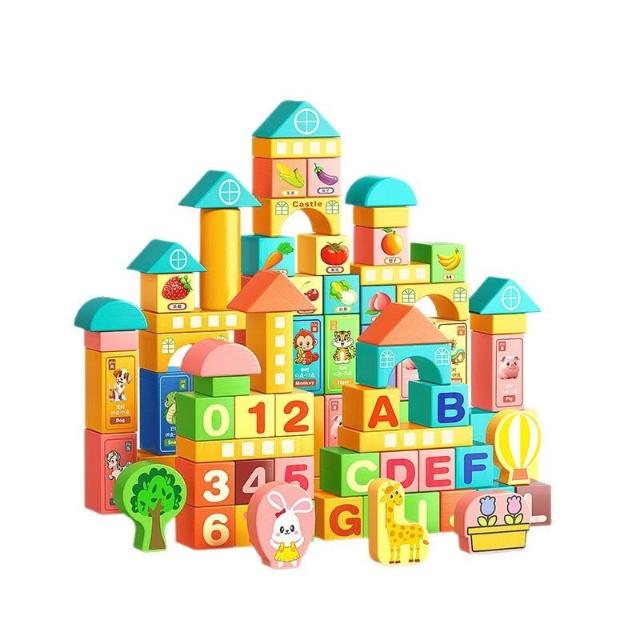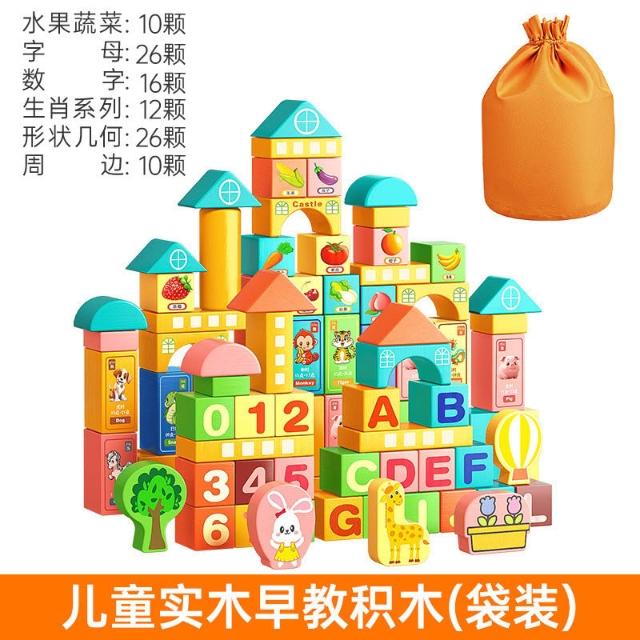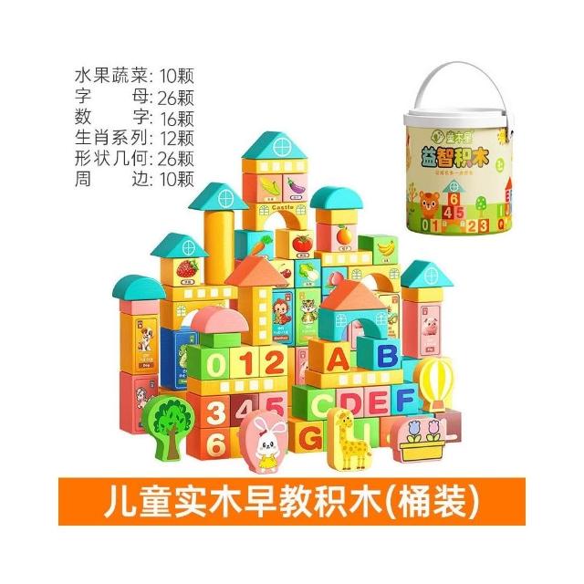 兒童實木積木玩具木質大顆粒嬰幼兒童早教拼裝1-2-3歲3-6歲男女孩
