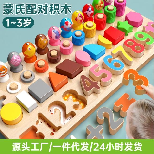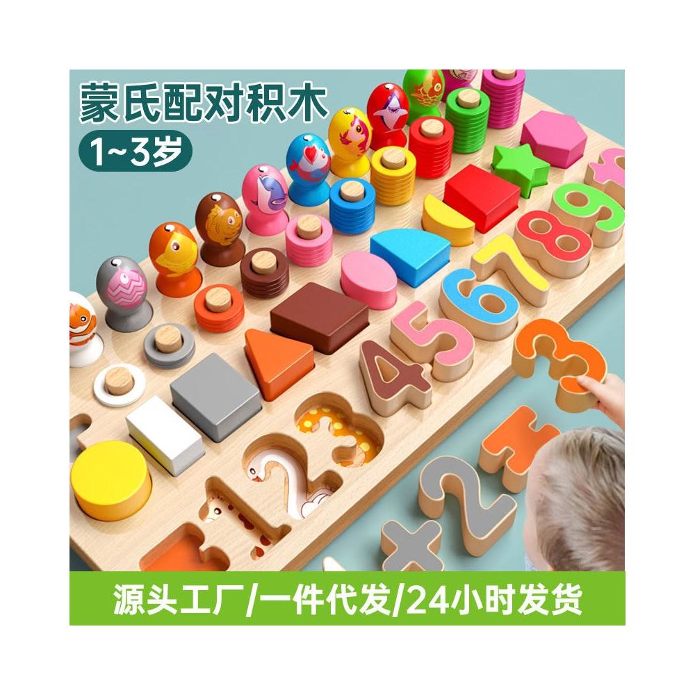 積木拼圖幼兒童1到3歲男孩女孩寶寶蒙氏早教益智啟蒙木質拼裝玩具