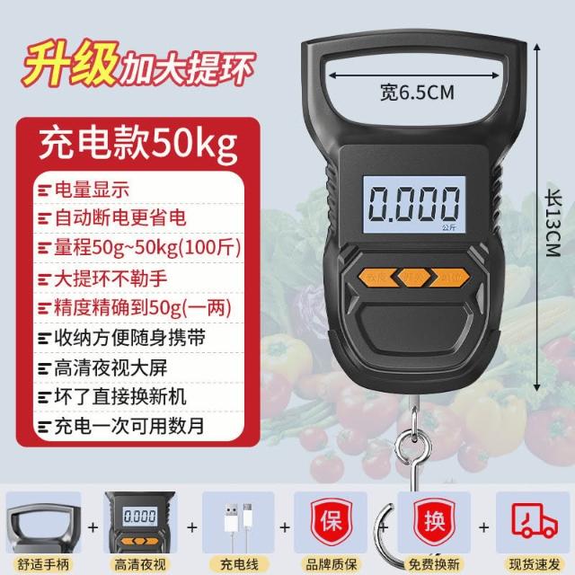 便攜式電子手提秤小型家用迷你吊秤快遞賣菜釣魚稱重50kg彈簧秤