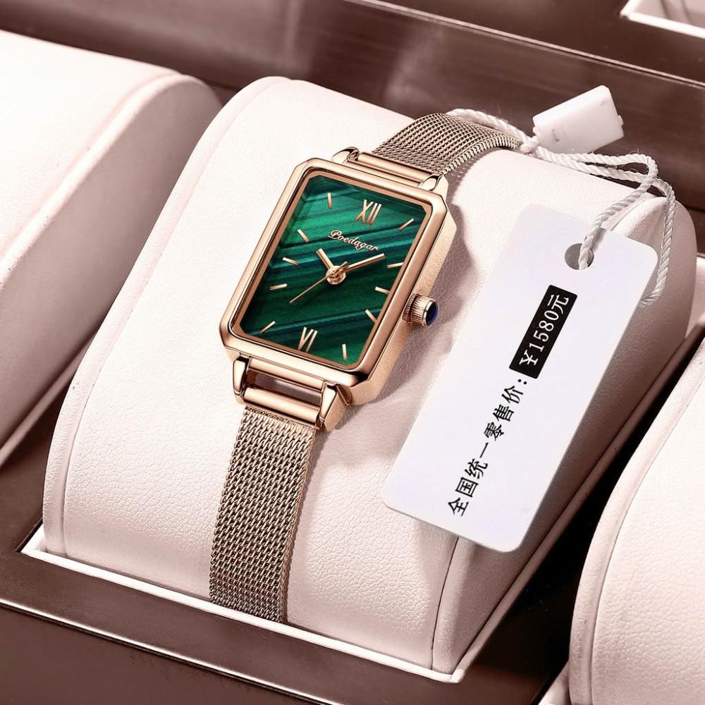 小綠表抖音直播爆款瑞士認證進口方形女士手錶網帶石英錶廠家定制