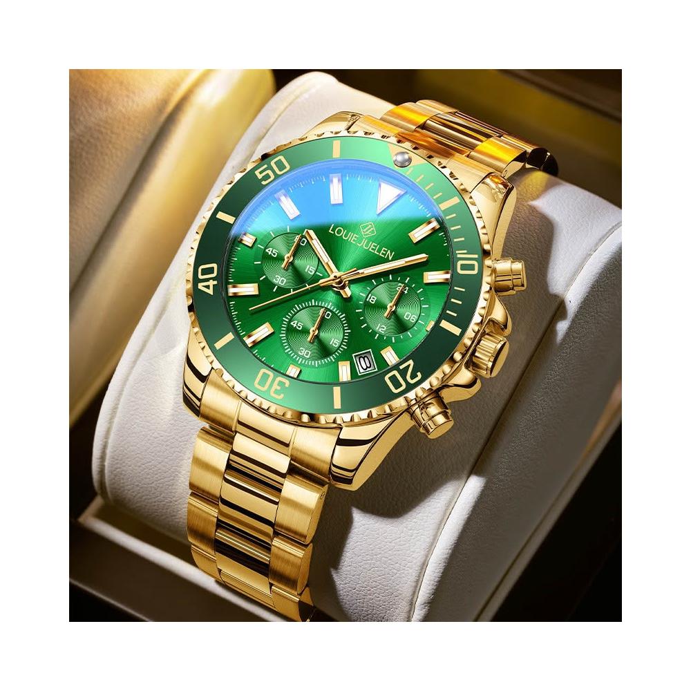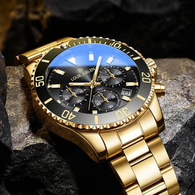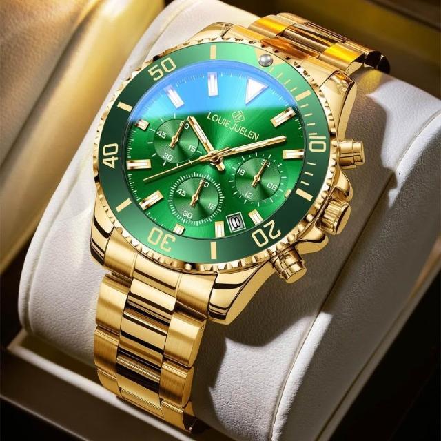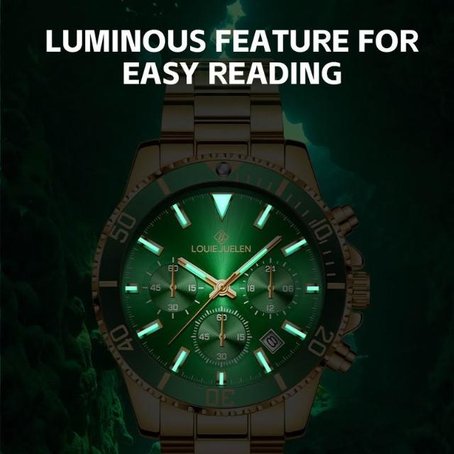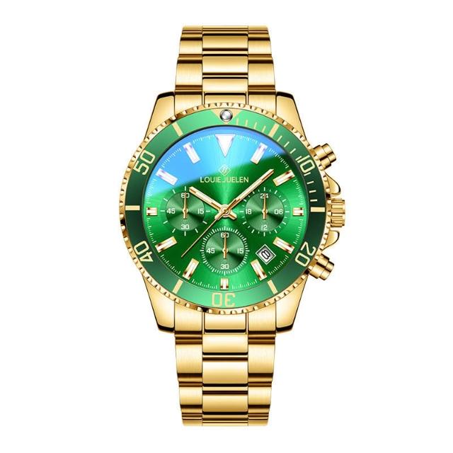 路易爵伦跨境外贸手表真三眼男士緑水鬼系列夜光潮流防水现货批发