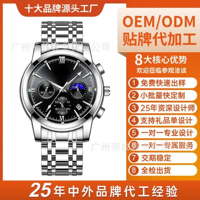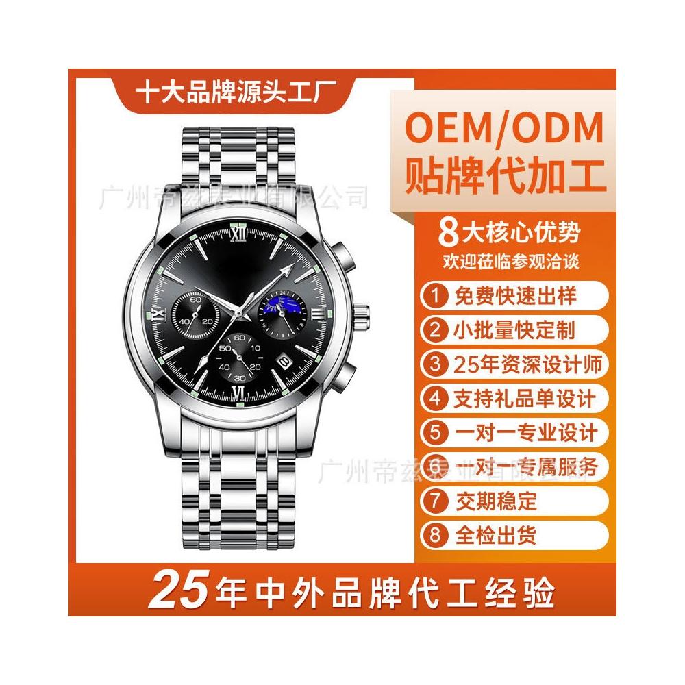 廣州帝茲工廠承接小批量外貿定制logo男士手錶石英表男watch夜光