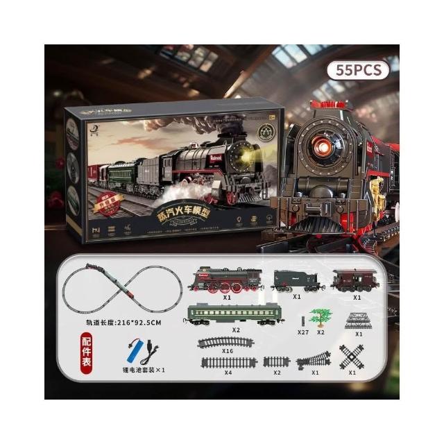 復古蒸汽火車軌道玩具套裝仿真電動小火車軌道玩具模型男孩