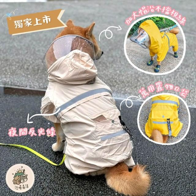 【汪喵森活 寵物雨衣 奶茶色 獨家🤎 狗雨衣 柴犬雨衣 反光雨衣 四腳雨衣