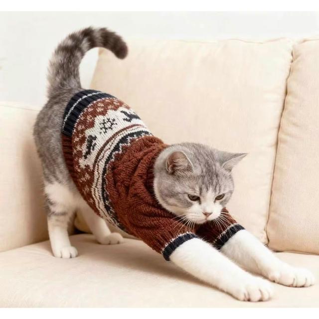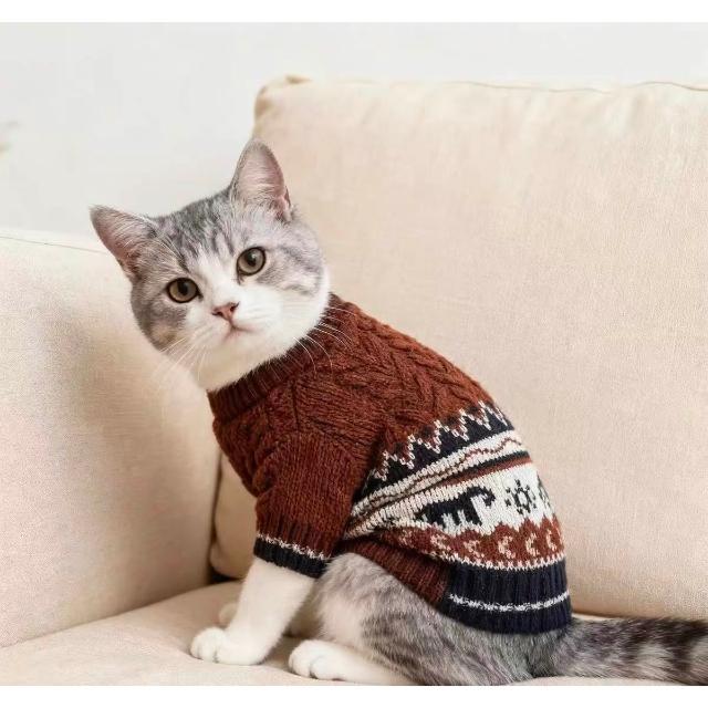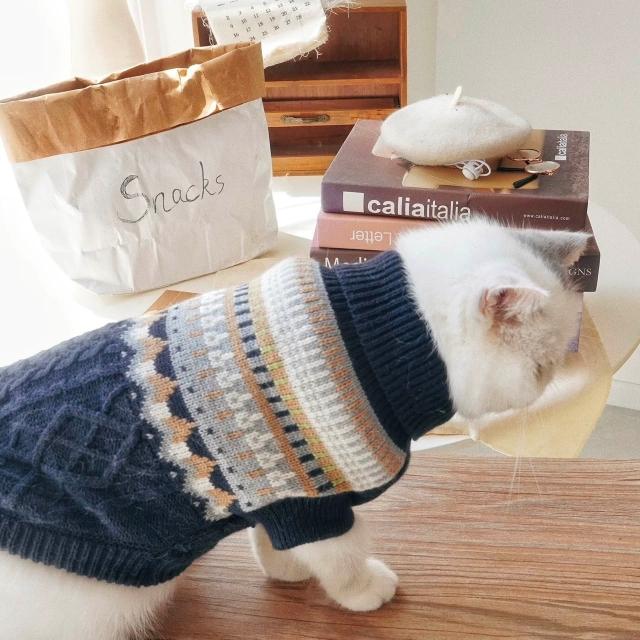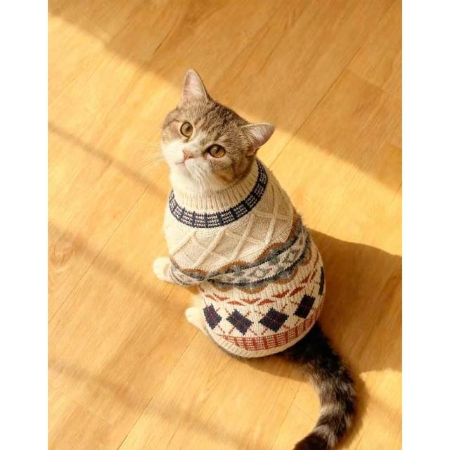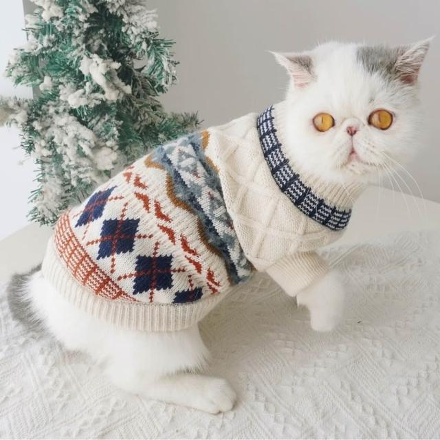汪喵森活 北歐風 菱格紋 2色 質感針織毛衣 貓狗毛衣 寵物毛衣 寵物服飾 狗衣服 貓衣服