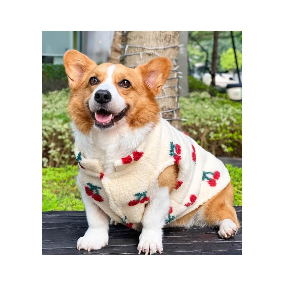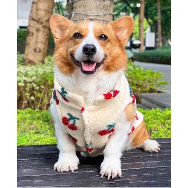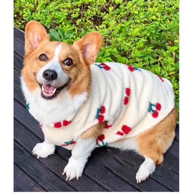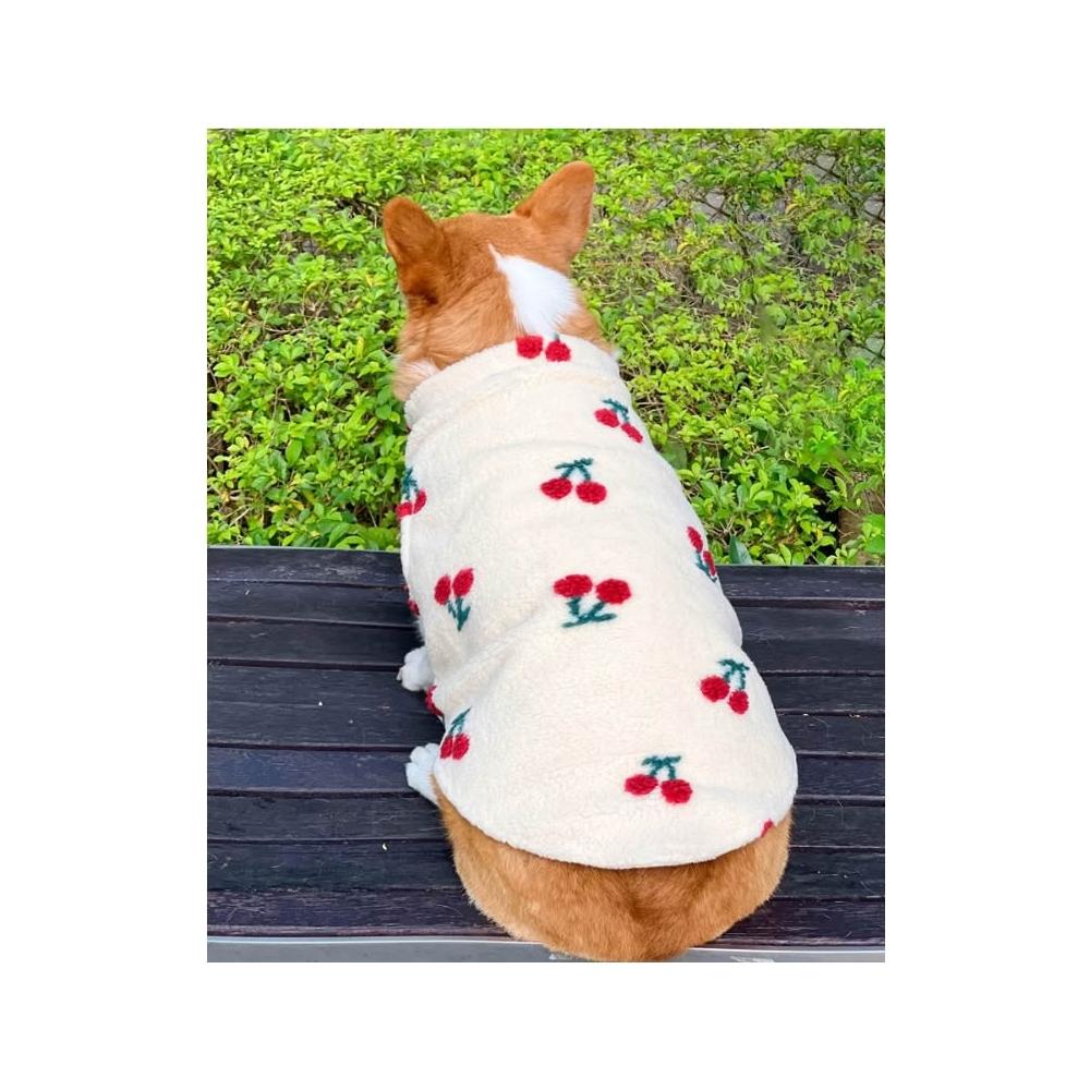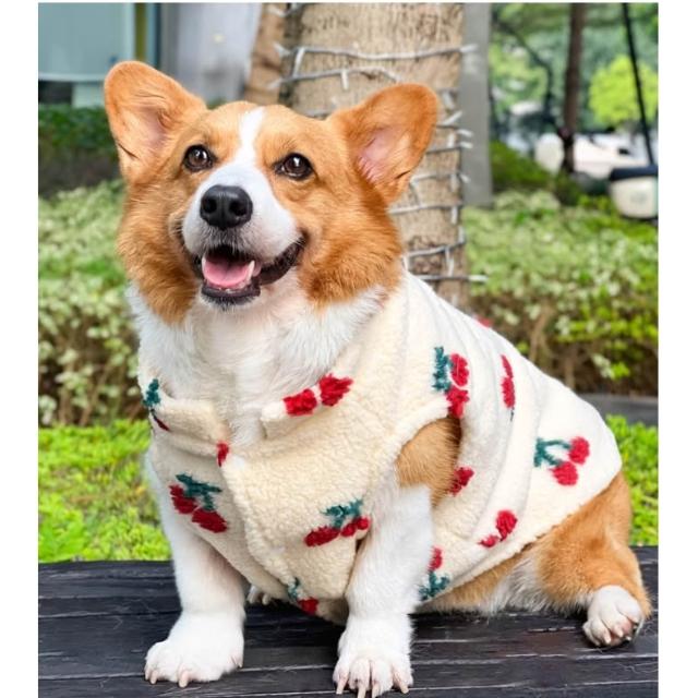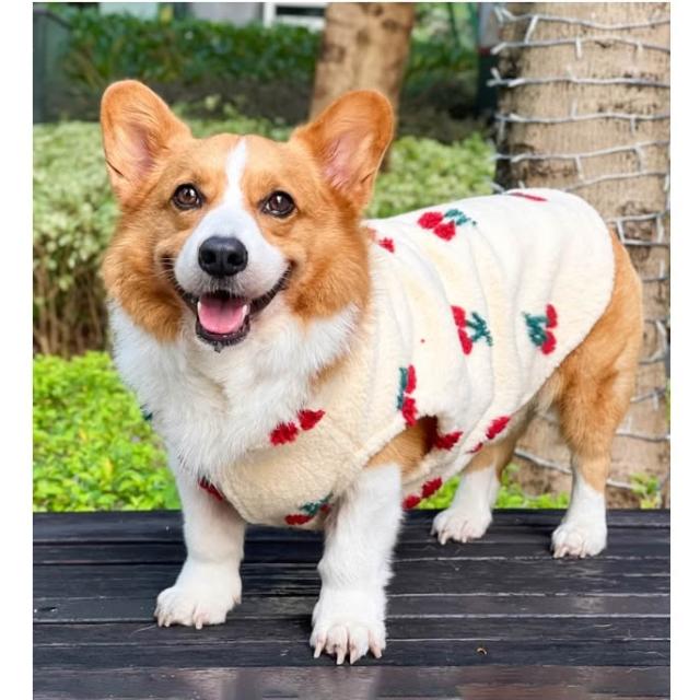 汪喵森活米黃色櫻桃 絨面保暖背心 秋冬服飾 狗衣服 寵物服飾 柯基衣服