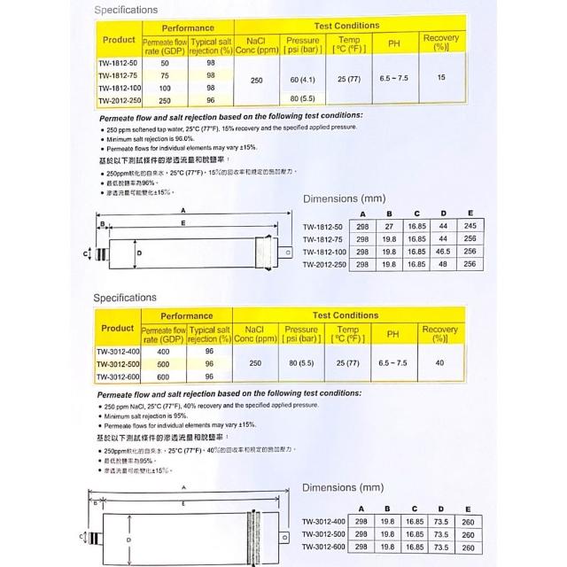 Clean Pure 1812-75加侖 RO膜生飲淨水器濾心