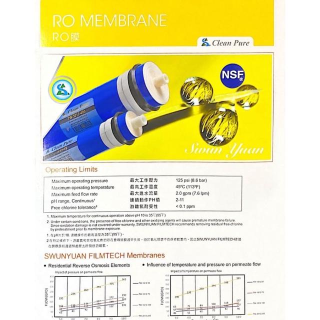 Clean Pure 1812-75加侖 RO膜生飲淨水器濾心