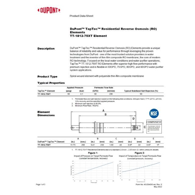 水材雜貨店杜邦陶氏Taptec 泰湃科 1812-75加侖 RO膜/1812/NSF認證