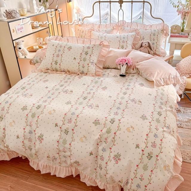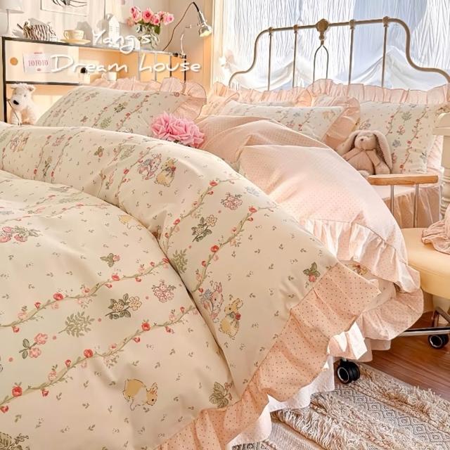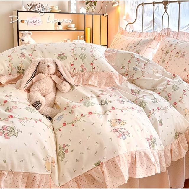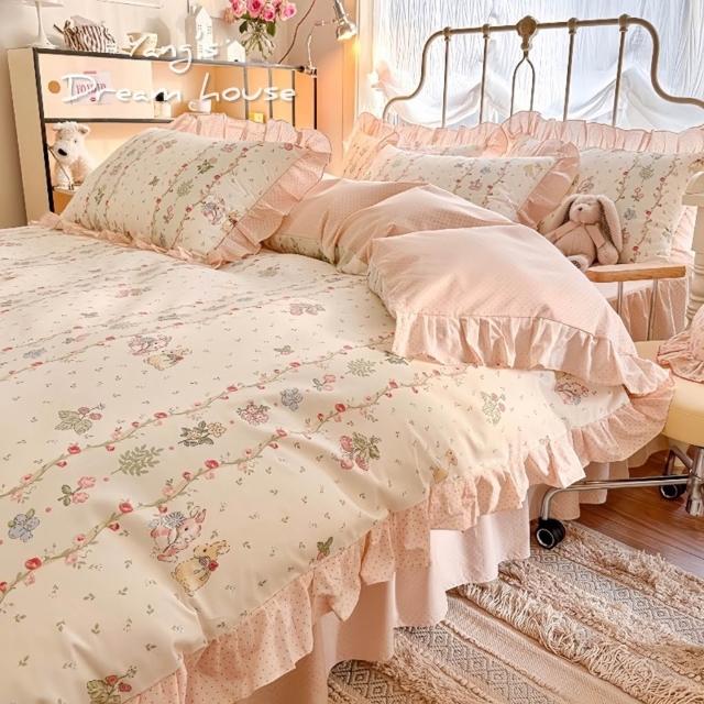 寢具 床裙 床包寢具組 4件組 公主風 小兔兔 荷葉邊寢具 全棉 高質感 生活用品 法式