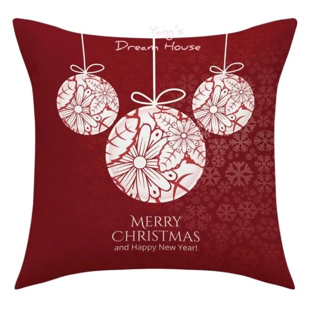 抱枕 抱枕套 聖誕節 裝飾 雪人蠟燭 松果 粉蝴蝶結花圈 居家裝飾 生活用品 棉麻抱枕 公主風