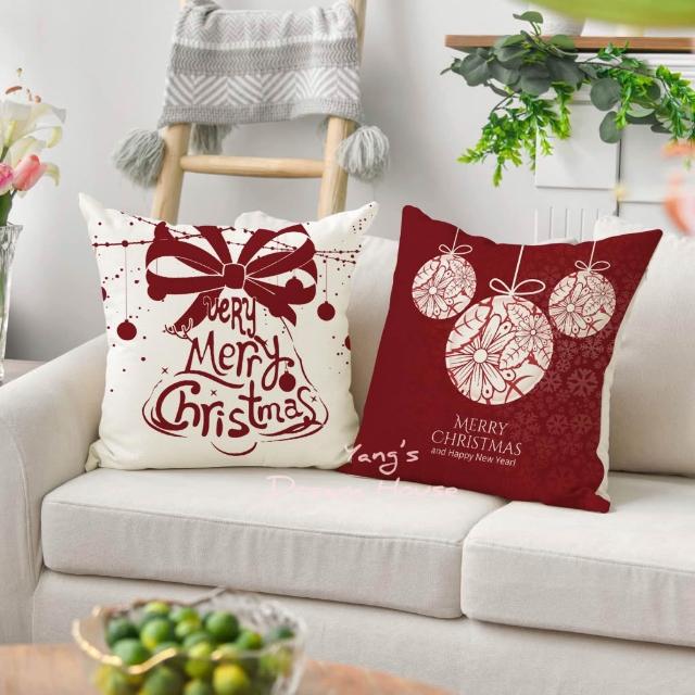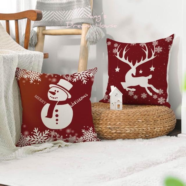 抱枕 抱枕套 聖誕節 裝飾 雪人蠟燭 松果 粉蝴蝶結花圈 居家裝飾 生活用品 棉麻抱枕 公主風