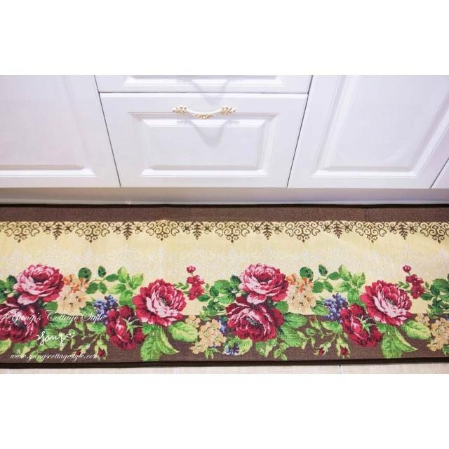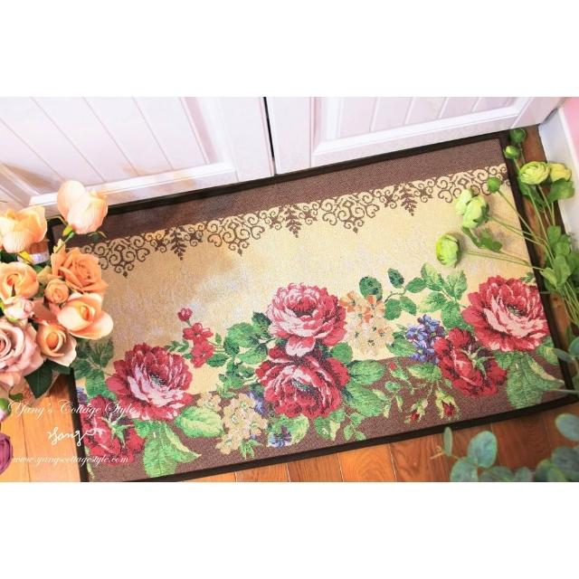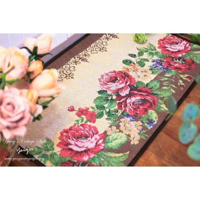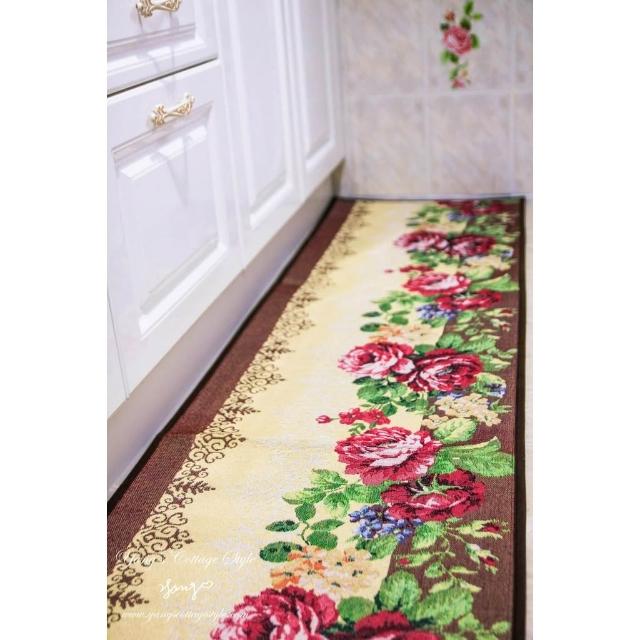 地毯 牡丹長型地毯 吸水 防滑 棉質 鄉村風 公主風 歐式 生活用品 居家生活 地墊 廚房