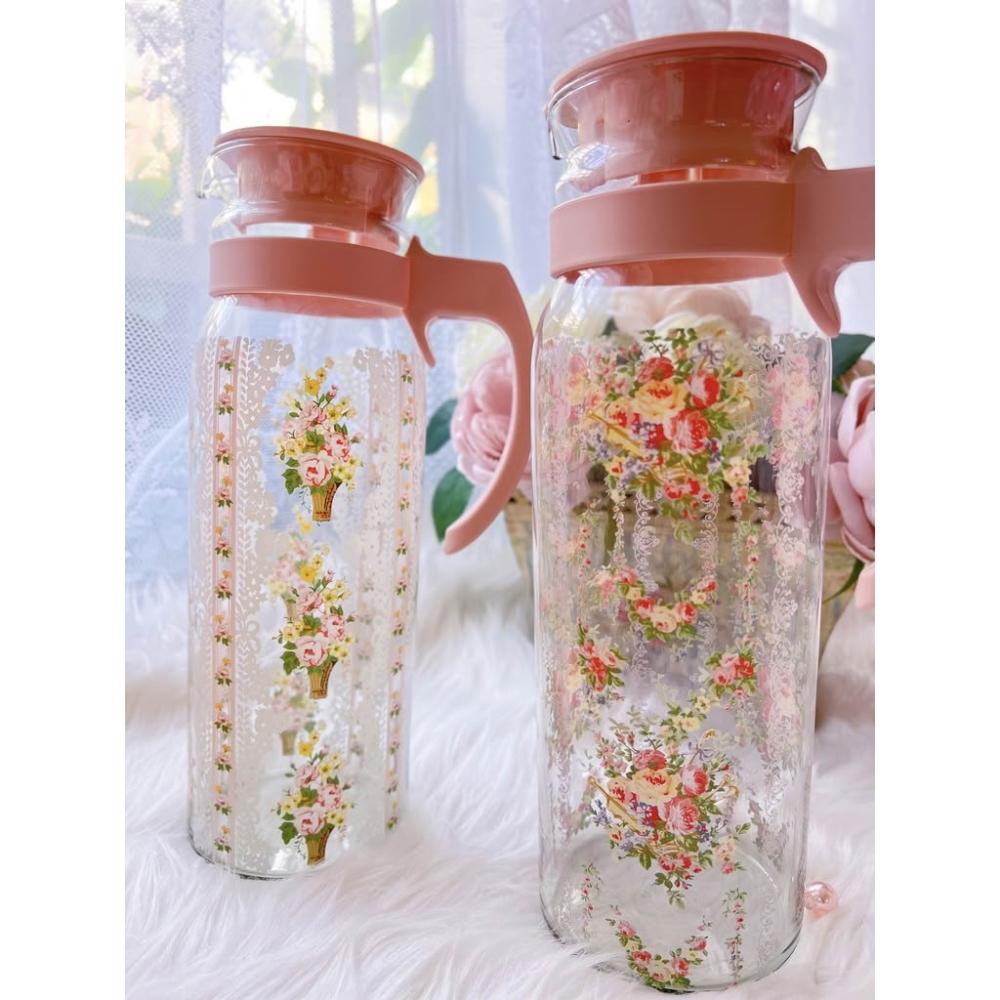 夢幻 玫瑰 蕾絲 冷 熱水壺 玻璃瓶 復古 生活用品 居家生活 歐式 法式 家飾 公主風 泡茶 冷飲