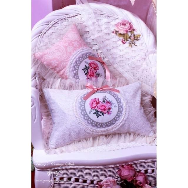 高品質 高質感 玫瑰珍珠抱枕 浪漫滿屋 擺件 居家生活 蕾絲 蝴蝶結 生活用品 歐式 美式 寢具 鄉村風