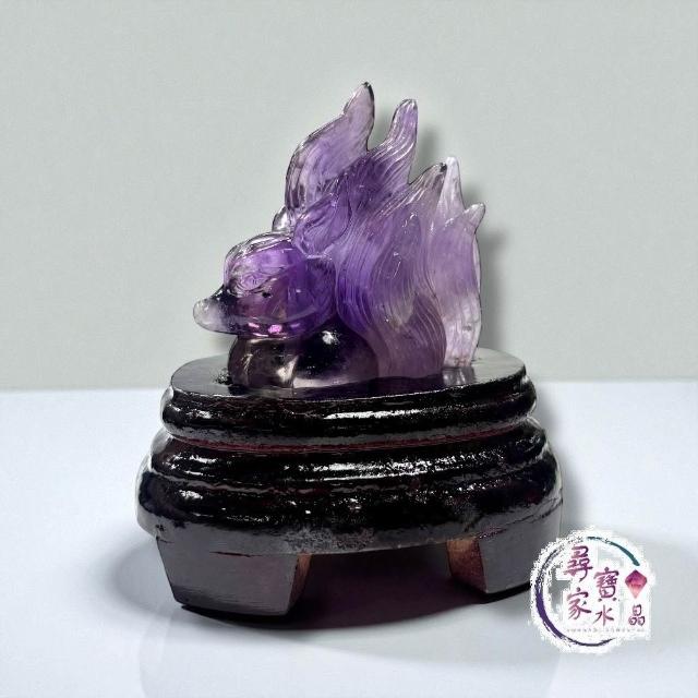 尋寶家水晶【PFOX-2】|紫水晶九尾狐擺件(手工雕刻)|魅力桃花・人緣提升・心靈智慧