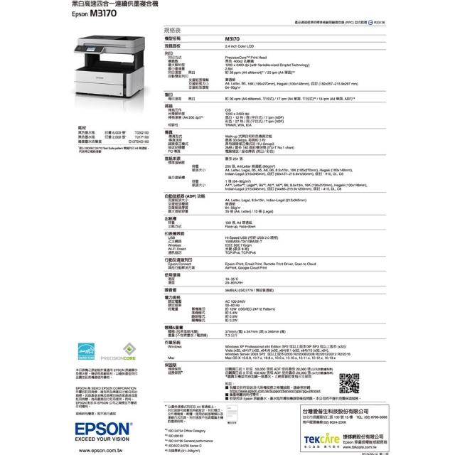 EPSONEPSON M3170 黑白 高速 雙網 多功能 事務機 複合機 印表機 另售 M1120 M2050 M2110