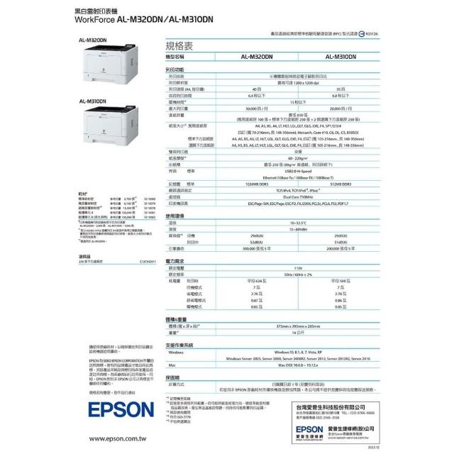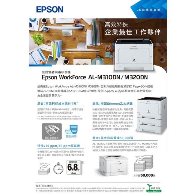 EPSONEPSON WorkForce AL-M320DN / M320 大印量 高速列印 雙面 黑白雷射 印表機