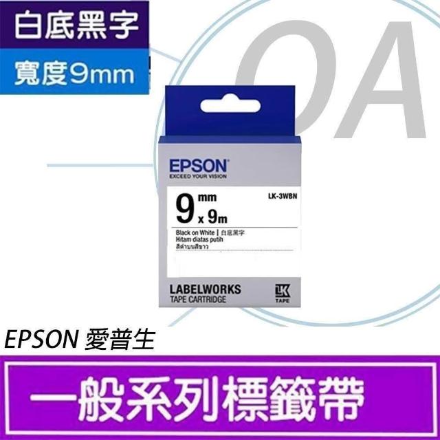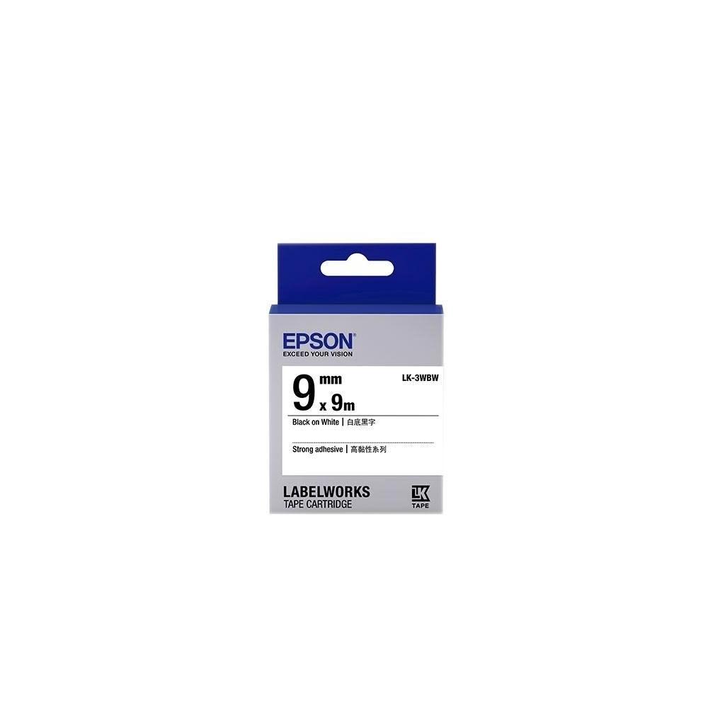 EPSONEPSON LK-3WBW LK3WBW S653410 高黏性系列 白底黑字 9mm 防水 標籤帶 單入 另售 打孔機