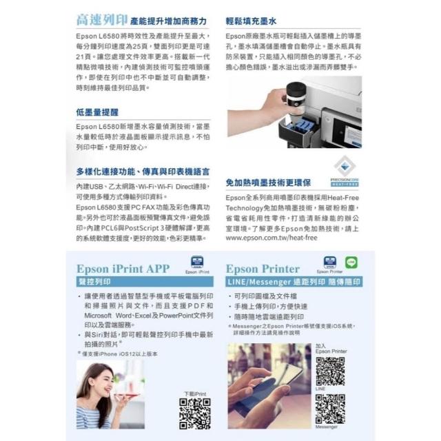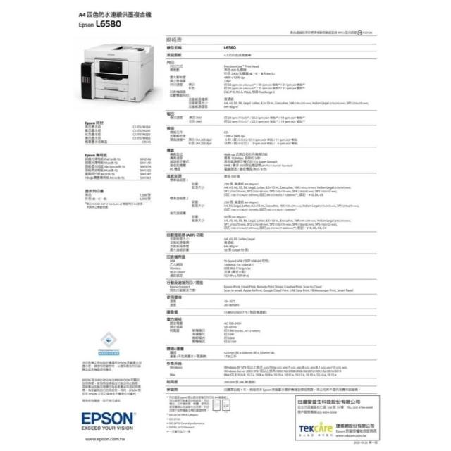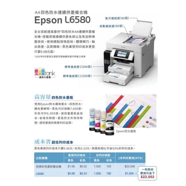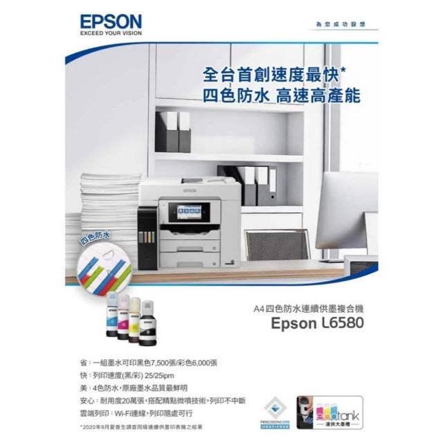 EPSONEPSON L6580 四色防水 高速A4 商用 多功能 事務機 複合機 印表機 + T06G四色墨水一組 另售 碎紙機