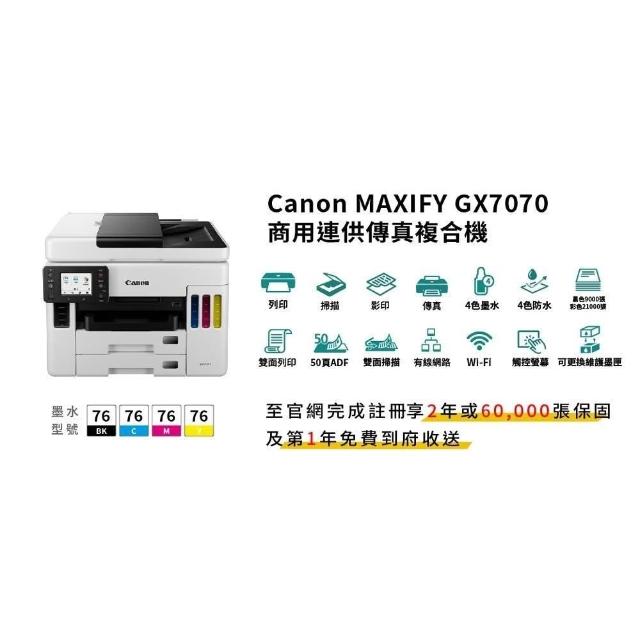 Canon佳能 MAXIFY GX7070 7070 商用 多功能 連續供墨 複合機 事務機 + GI-76 四色墨水三組