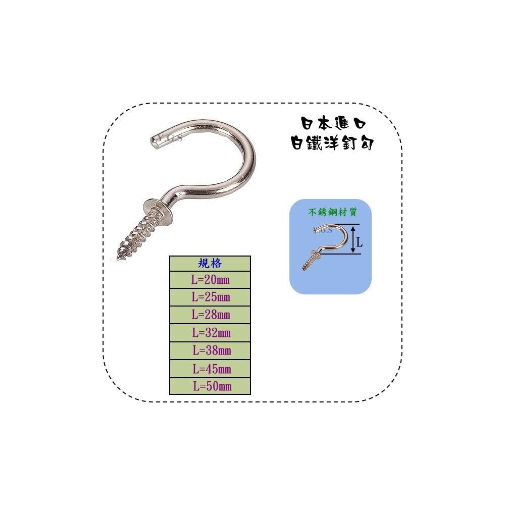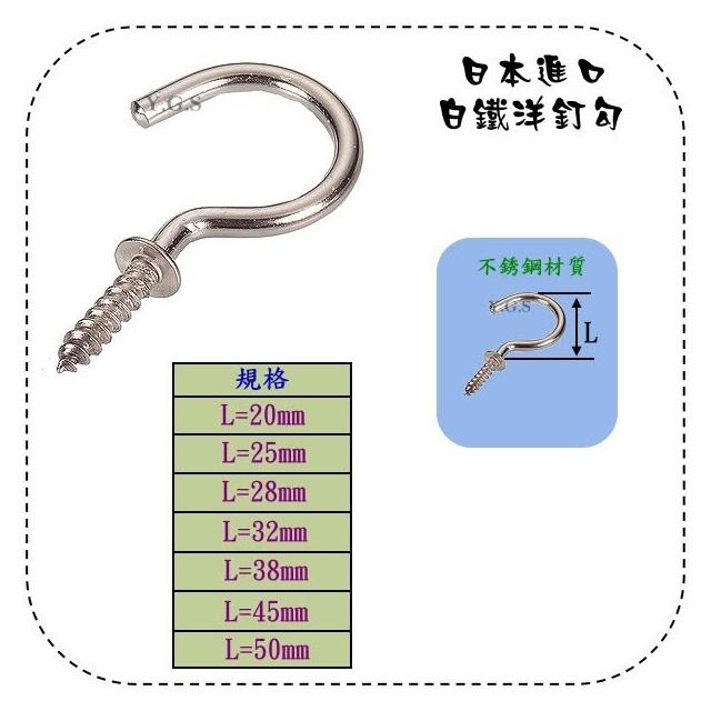 日本進口白鐵洋釘勾 掛勾 螺絲掛勾 問號勾 衣櫃配件五金