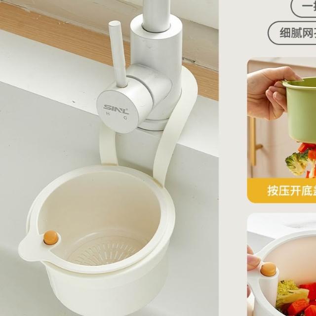 廚房掛式瀝水籃 廚房水槽瀝水架 按壓瀝水籃 水槽掛籃 按壓瀝水籃 殘渣過濾籃 瀝水籃 水槽防堵過濾掛籃