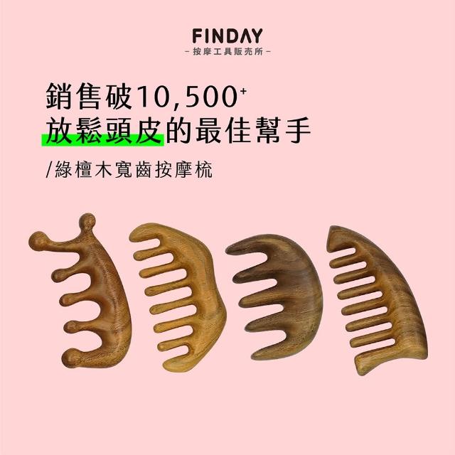 ﹝FINDAY﹞天然真綠檀木梳|寬齒按摩梳/經絡梳/頭皮按摩/綠檀木梳子/綠檀木梳/按摩頭皮/五齒按摩梳