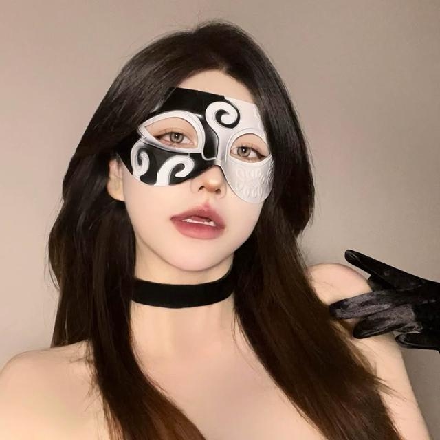 黑白郎君 雙色面具 眼罩 面具 雕花 撞色 全罩面具 造形面具 面具 半罩面具 萬聖節變裝 舞會 尾牙 春