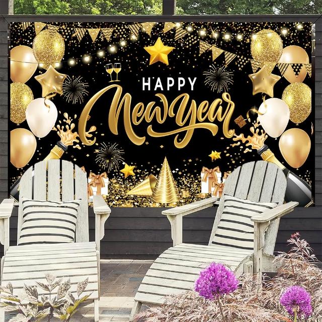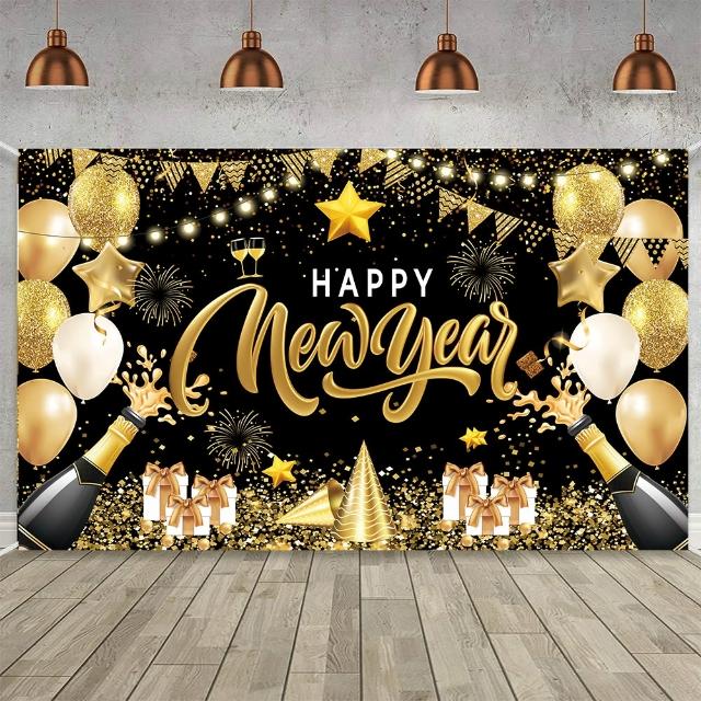 新款新年背景布 多款 跨年 新年佈置 180*110新年快樂 新款新年前夕歡呼掛布 繽紛煙花明亮 橫幅懸掛裝飾