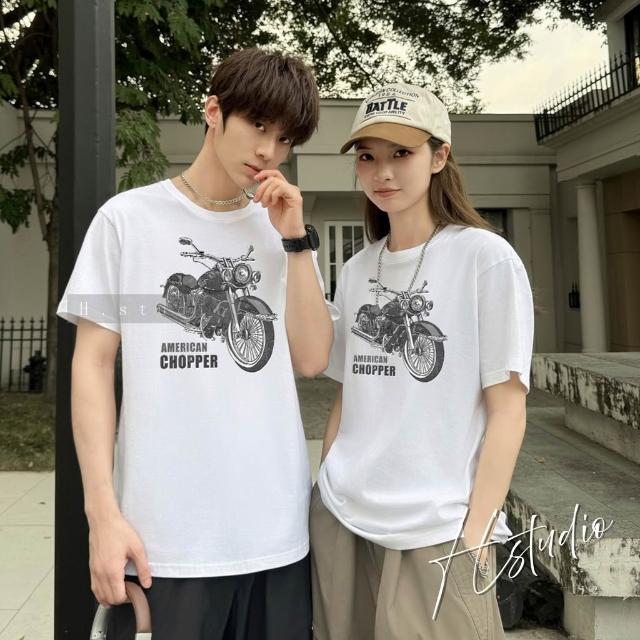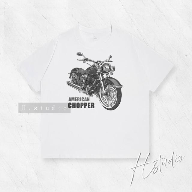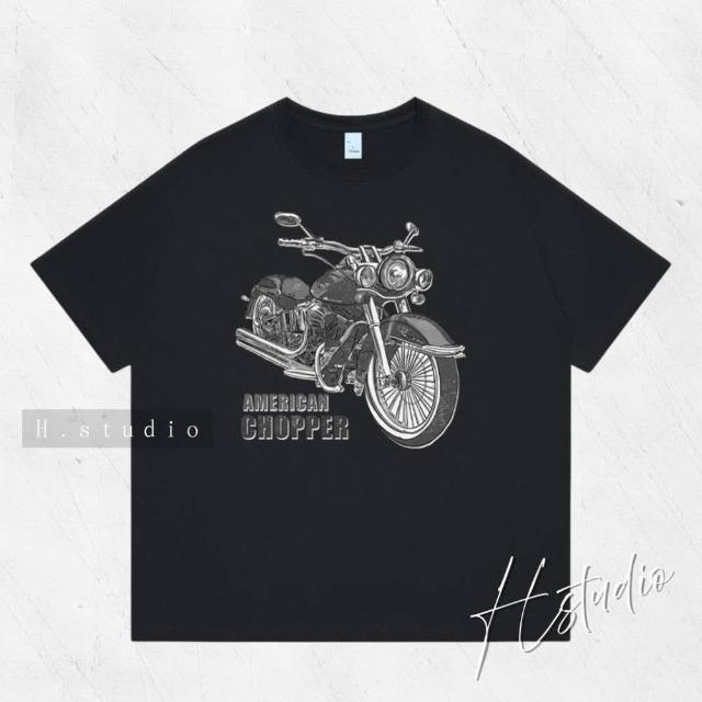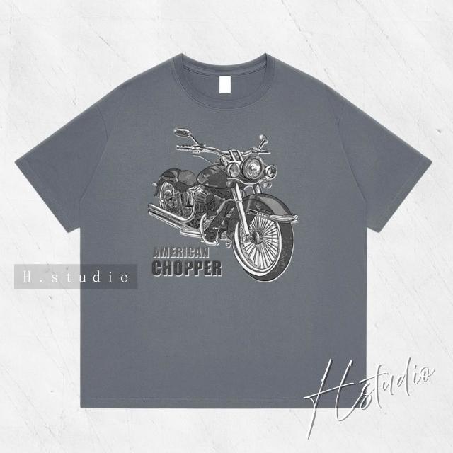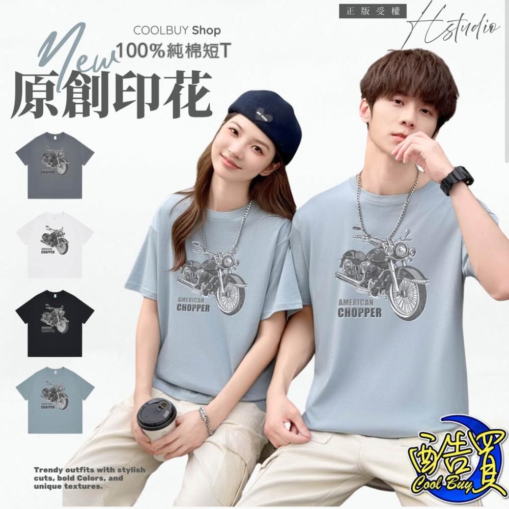 『酷買』重磅280g 情侶T 純棉T 機車 重機圖案 男裝短T 小 原創 小眾 重磅T 印花T 夏季短T 寬鬆 落肩