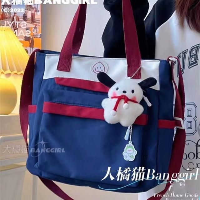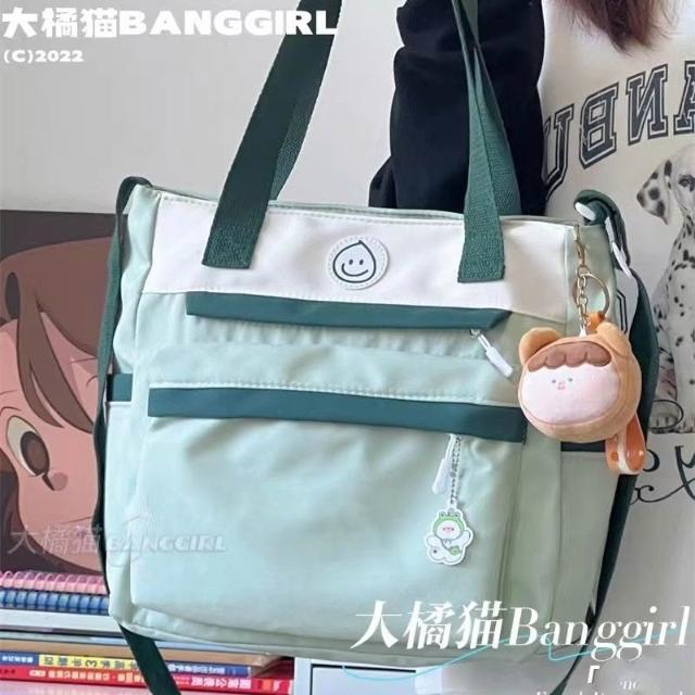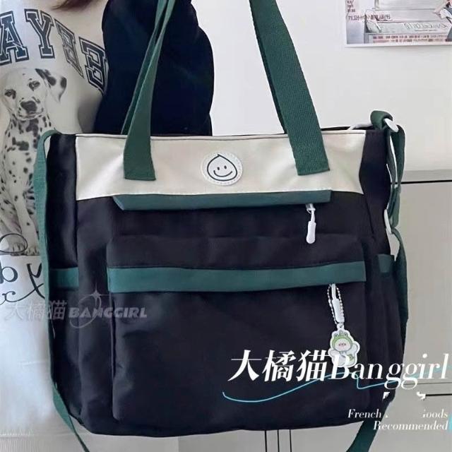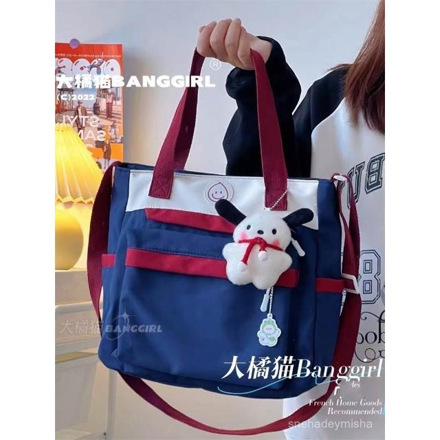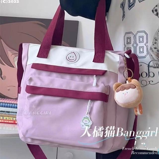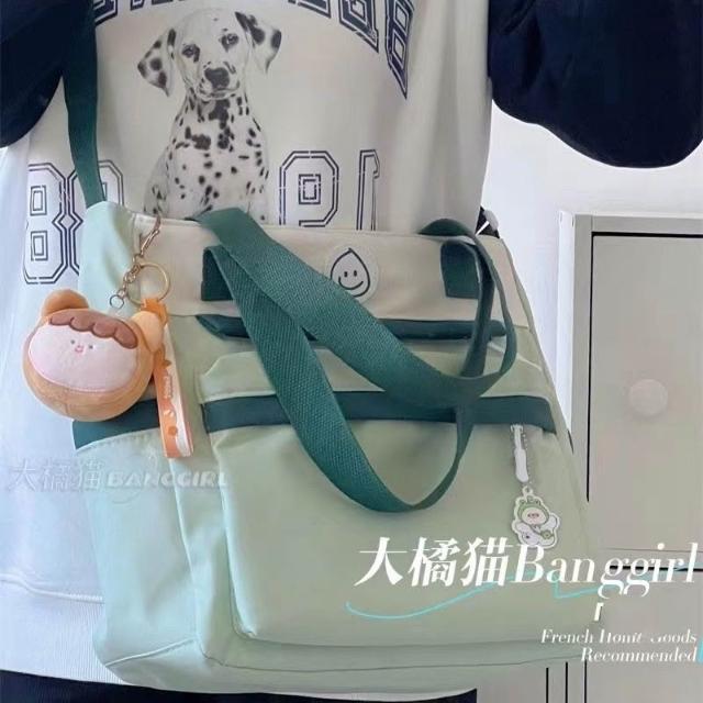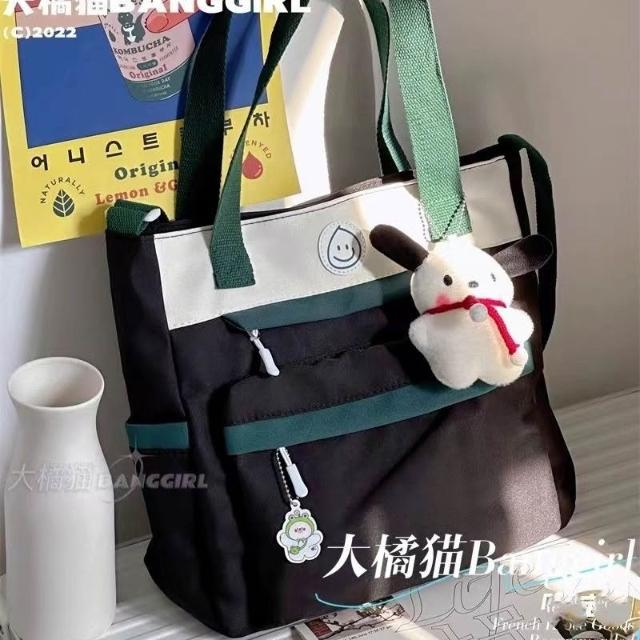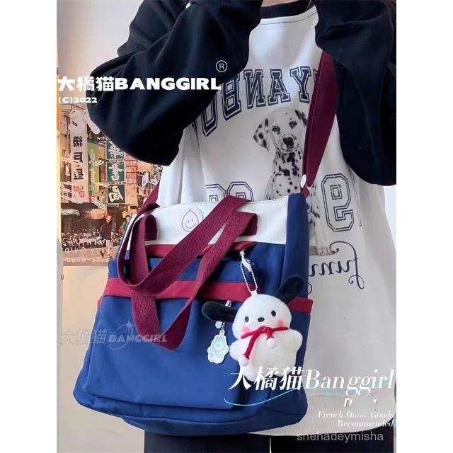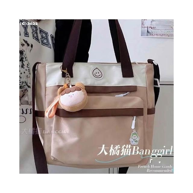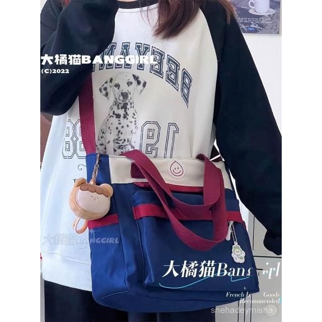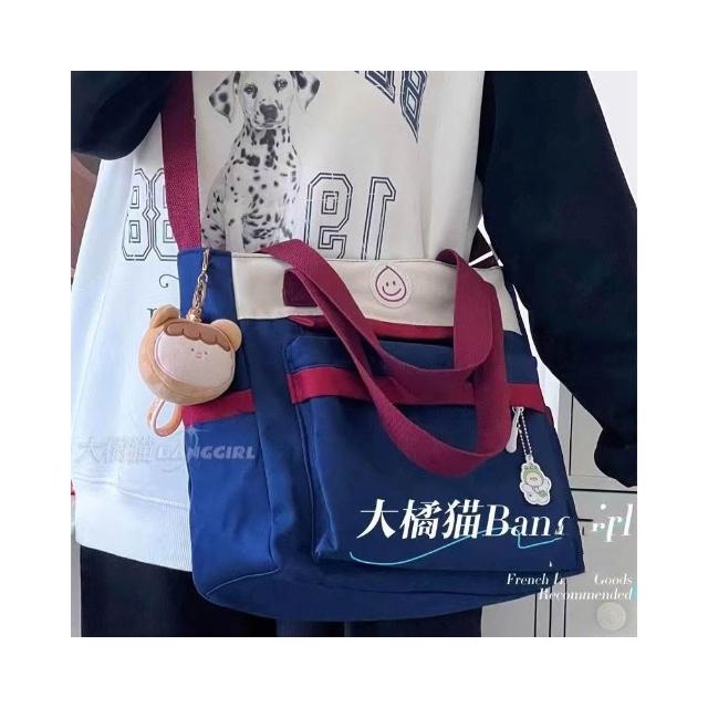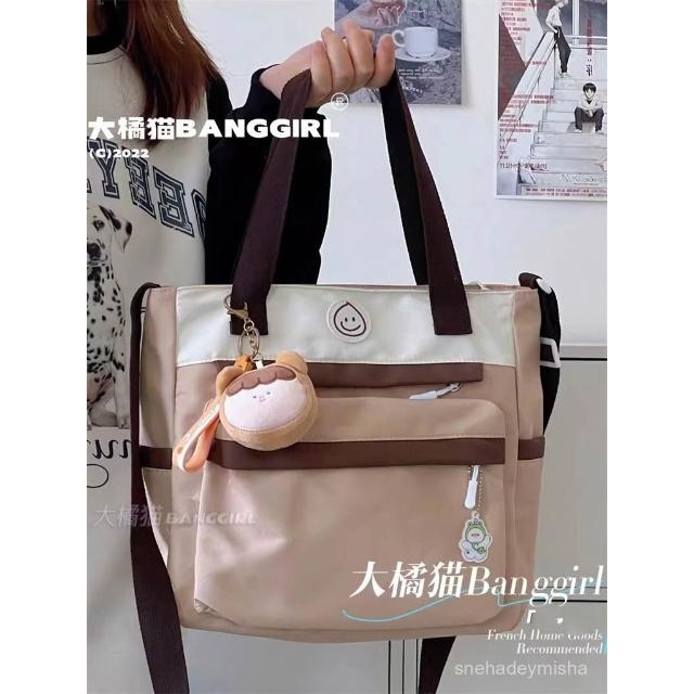 兜兜服飾 美式複古 高顔值百搭 撞色託特包 大容量大學生上課手提單肩包女