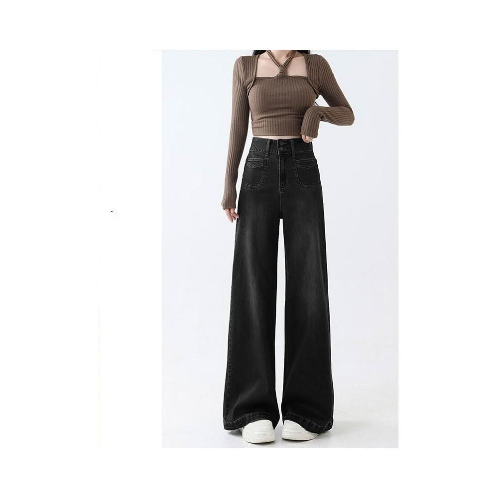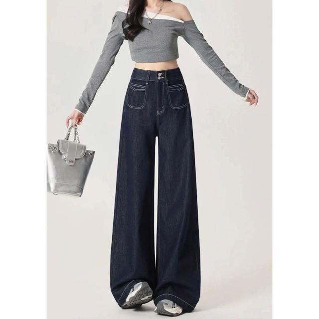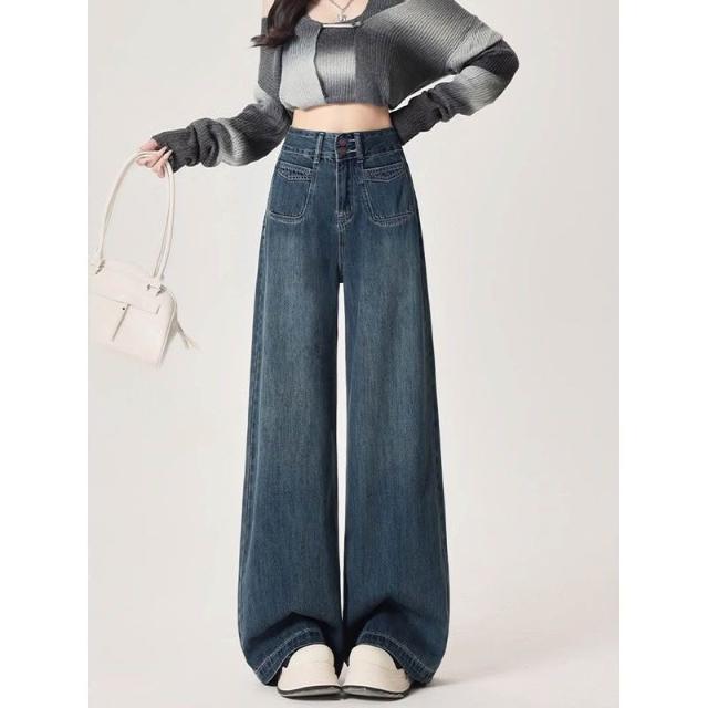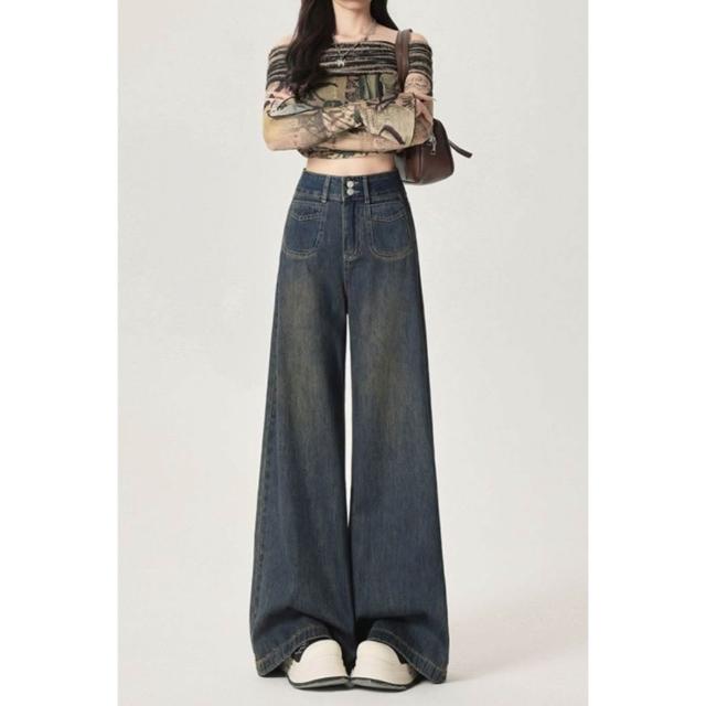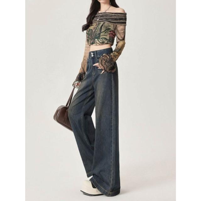兜兜服飾美式复古阔腿牛仔裤女 2025新款春秋季大码高腰宽松显瘦拖地直筒裤