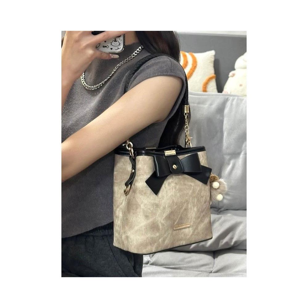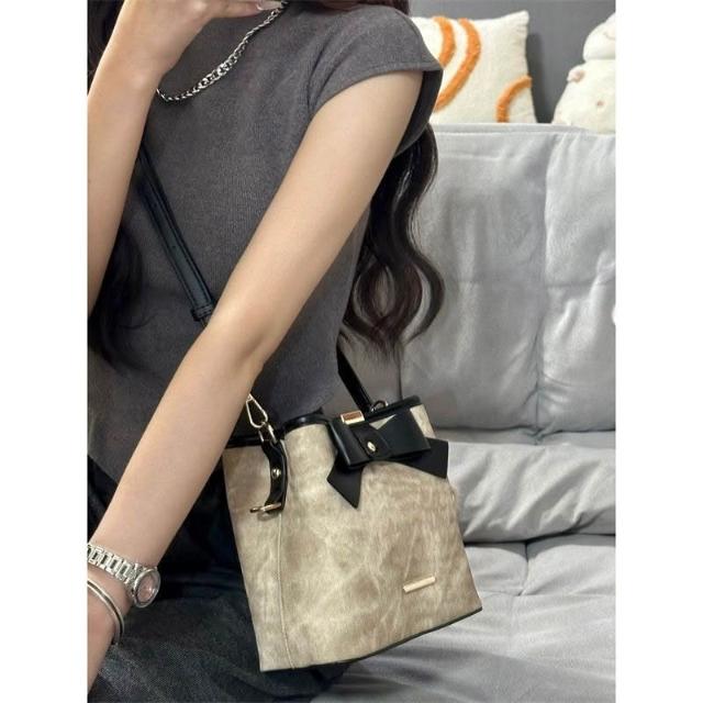 兜兜服饰包包女2025新款 高級感輕奢單肩斜挎包 小衆復古水桶包 中古通勤手提