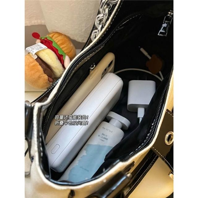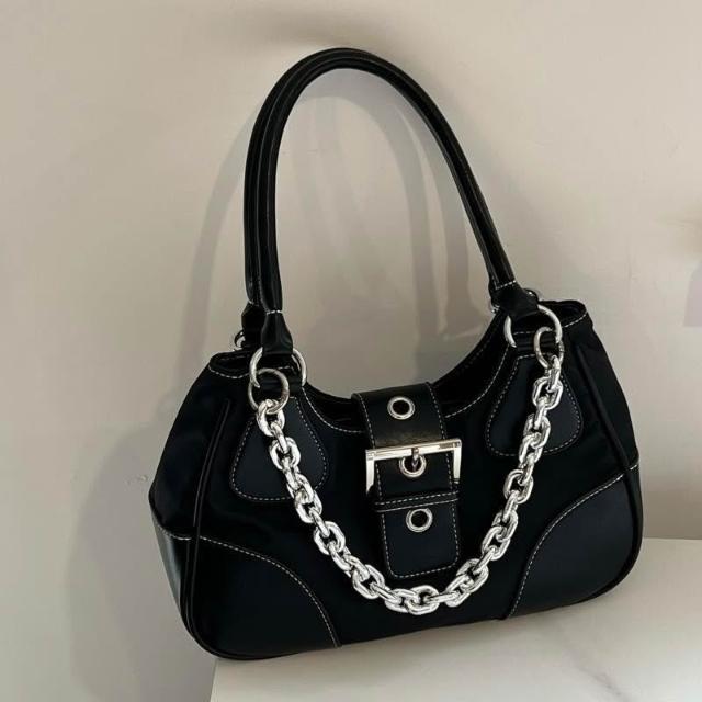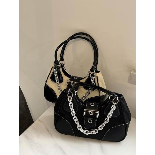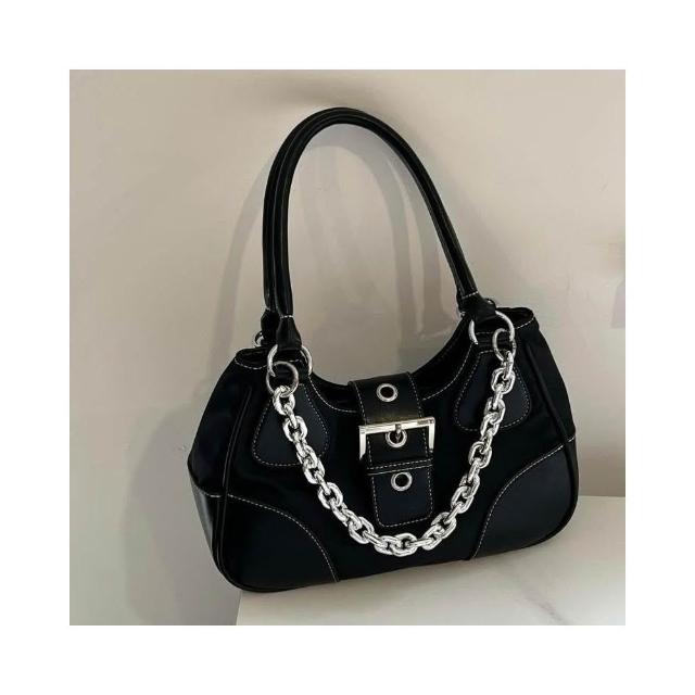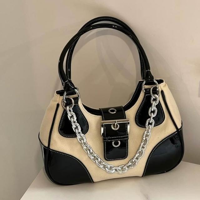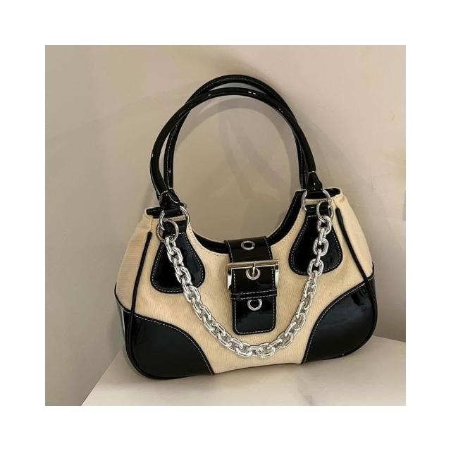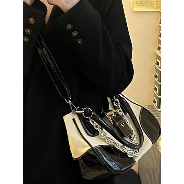 兜兜服饰高級感中古包 甜酷腋下包 漆皮帆布包 金屬鏈條辣妹包包女單肩斜挎包