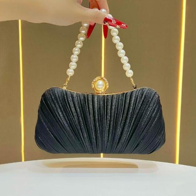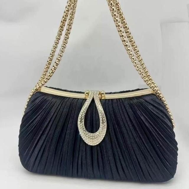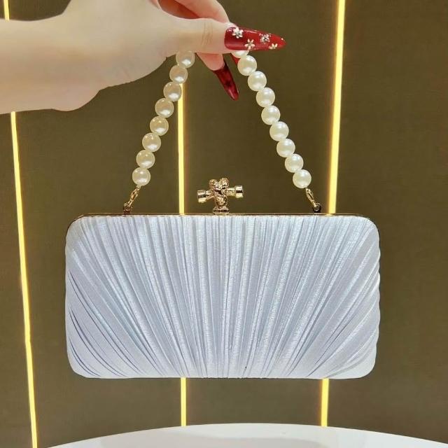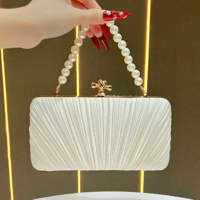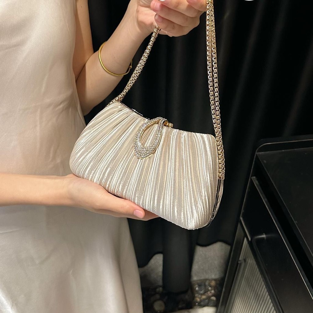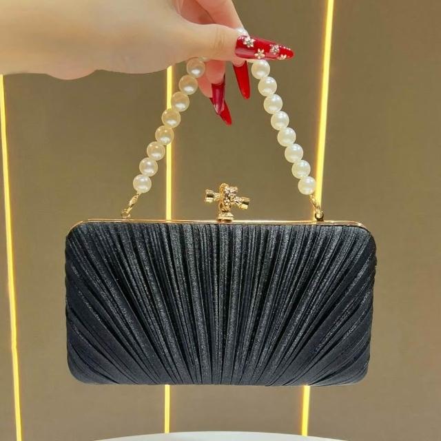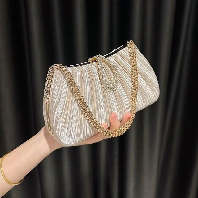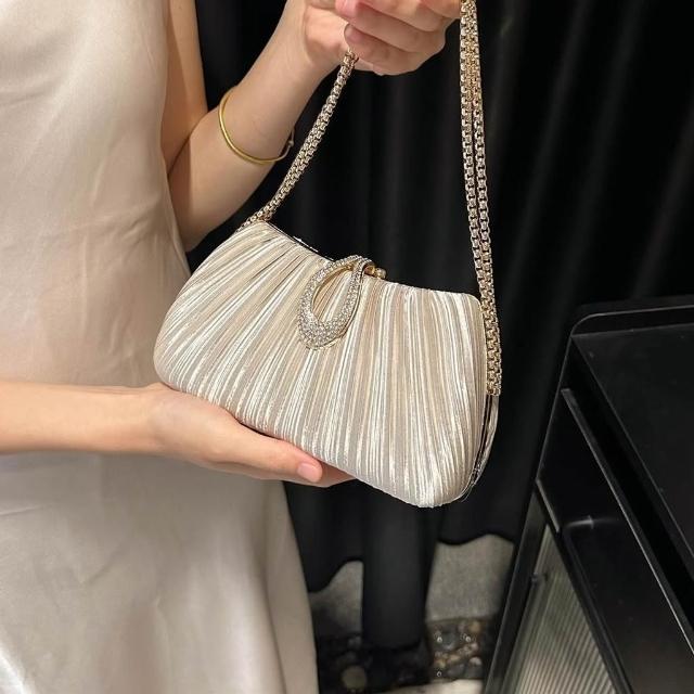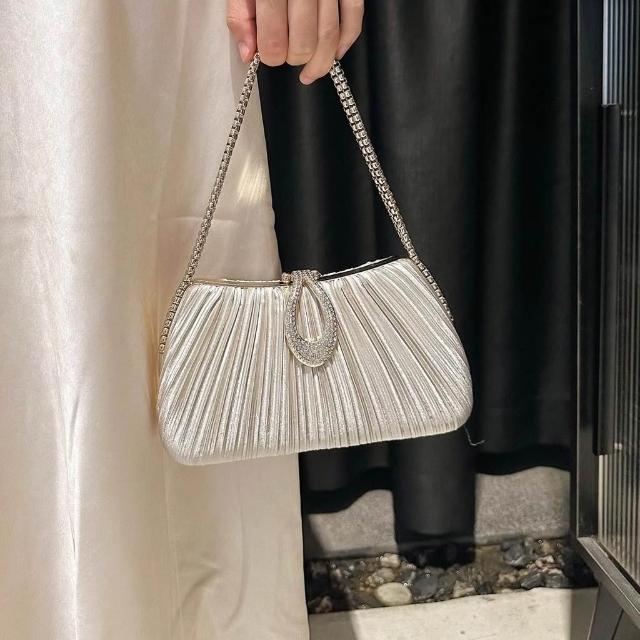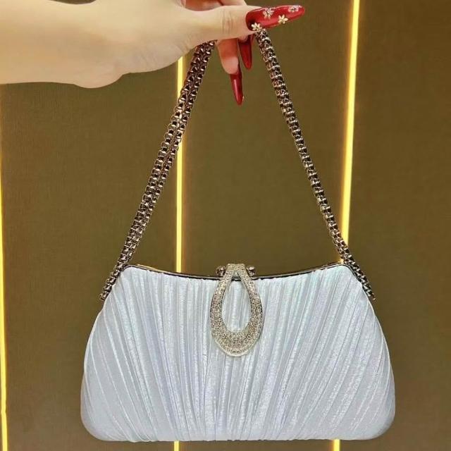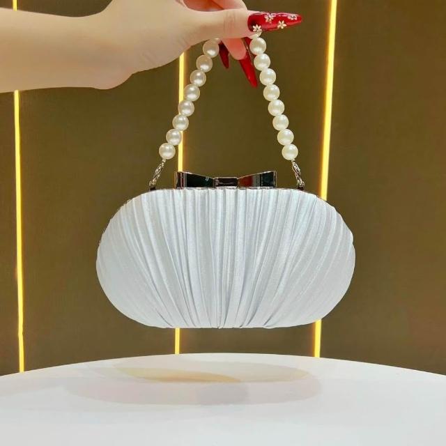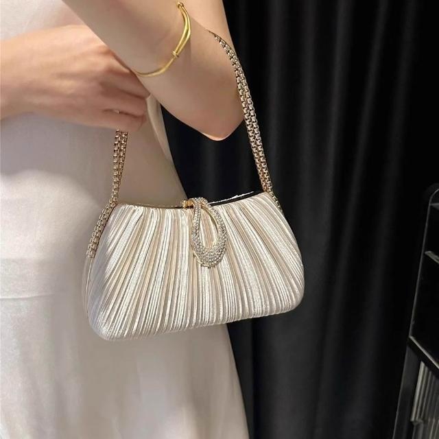 Neat lace新款緞面褶皺晚宴包 女包手鍊名媛禮服婆婆旗袍手提包女單肩斜挎包