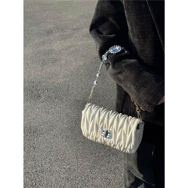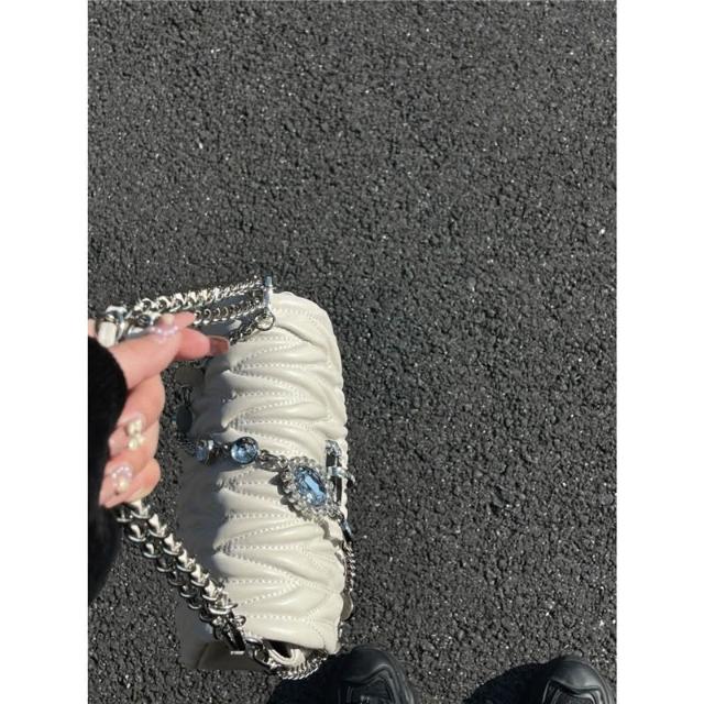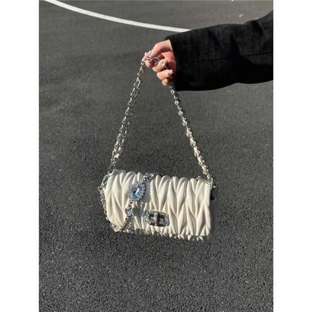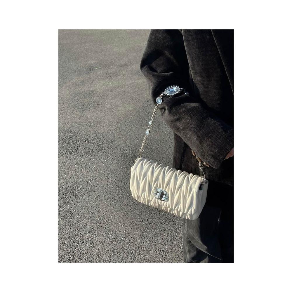 兜兜服饰高顏值小衆高級感褶皺小包包女 2025新款水鑽鏈條腋下包單肩斜挎包