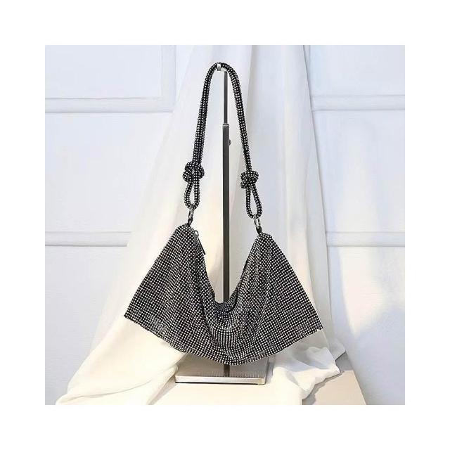 兜兜服饰閃亮的包包 手工鑲鑽鑽石包 金屬亮片滿鑽水鑽包 餃子包 腋下包高級感