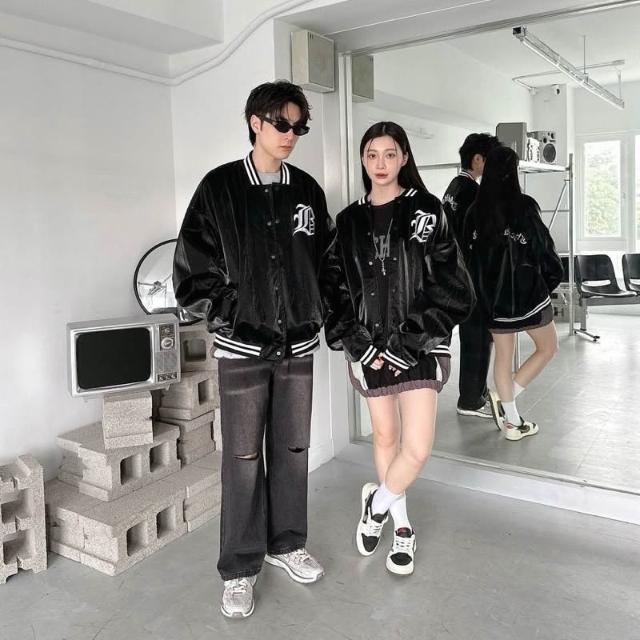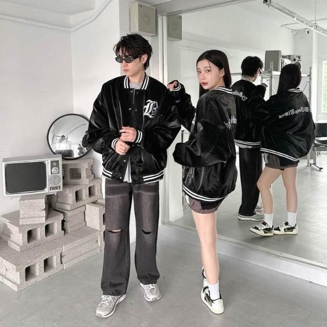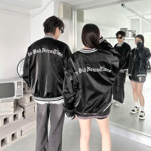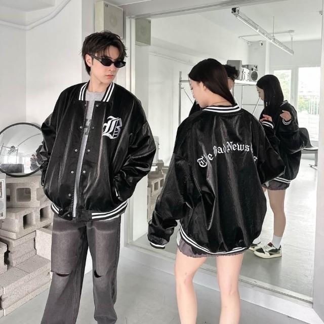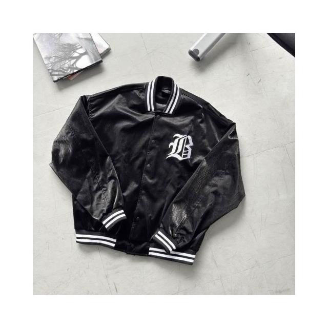 韓國 美式 復古 仿舊 皮革 皮衣 皮外套 哥德 字母 刺繡 街頭 潮流 百搭 情侶 皮外套 棒球外套 外套