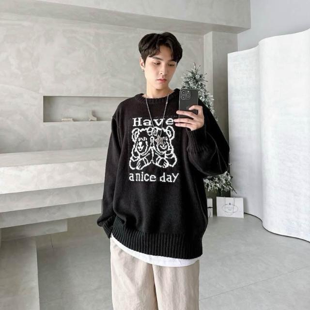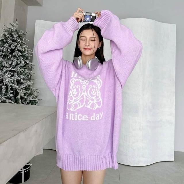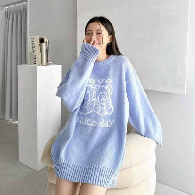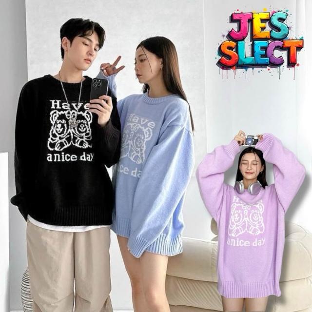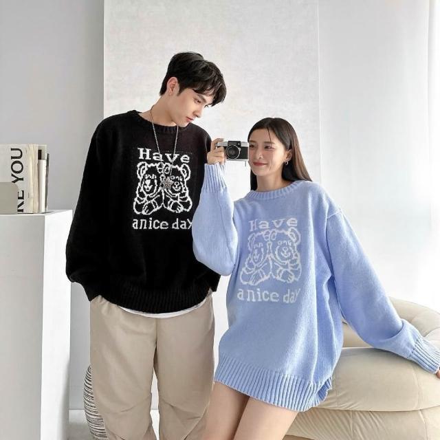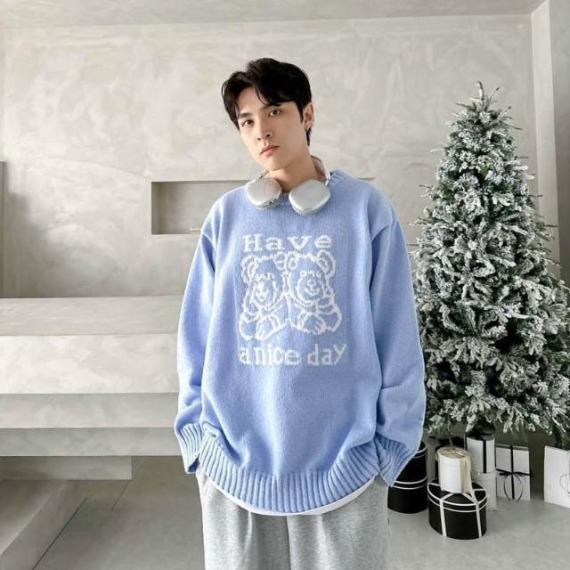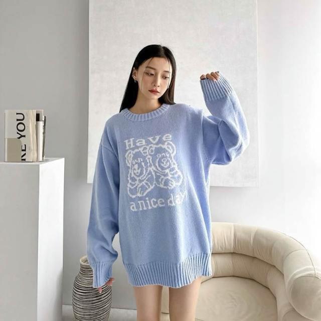 韓國 針織 毛衣 小熊 熊熊 公仔 造型 親膚 透氣 保暖 時尚 潮流 百搭 情侶 長袖 針織衣 長T 毛衣