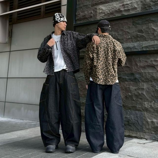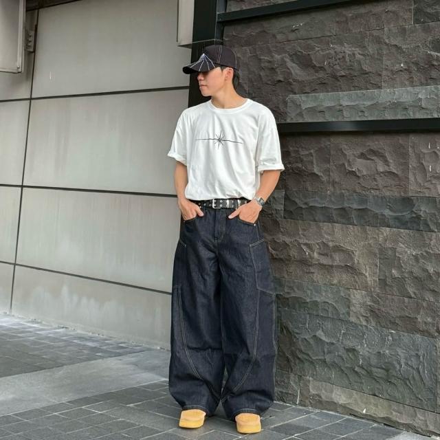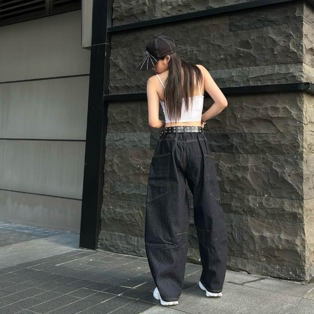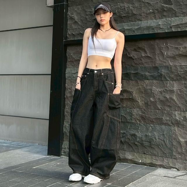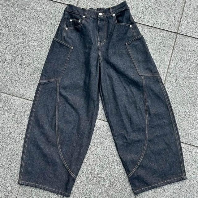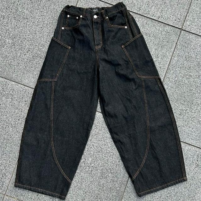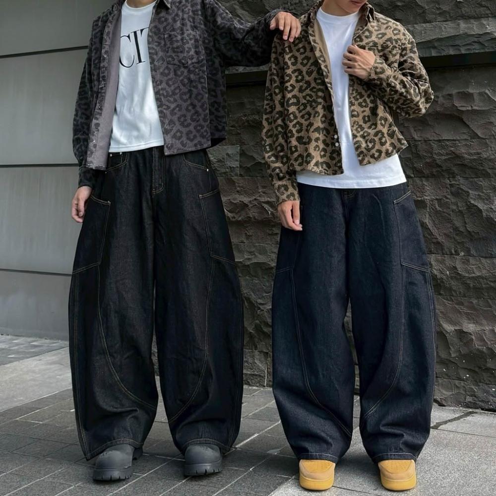 韓國 美式 原色 丹寧 牛仔 彎刀褲 側口袋 彎刀 車線 剪裁 潮流 街頭 百搭 情侶 寬褲 牛仔長褲 長褲