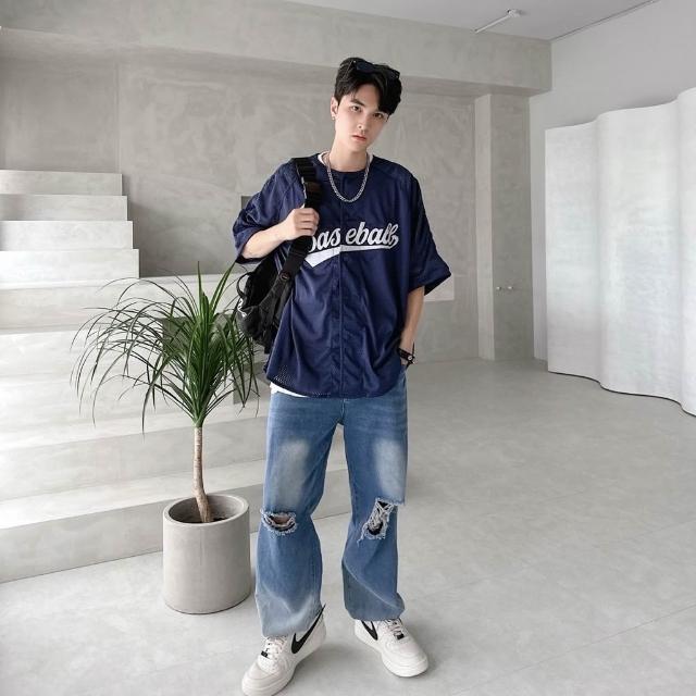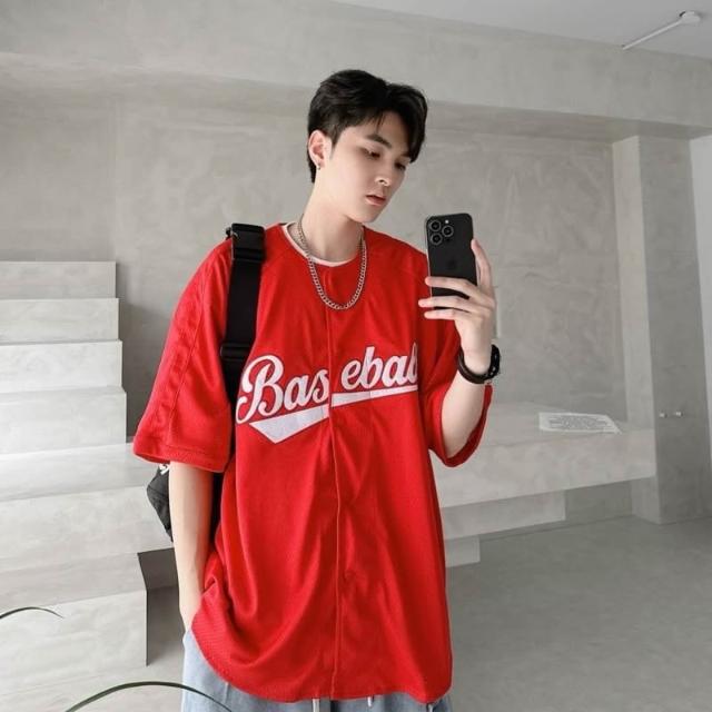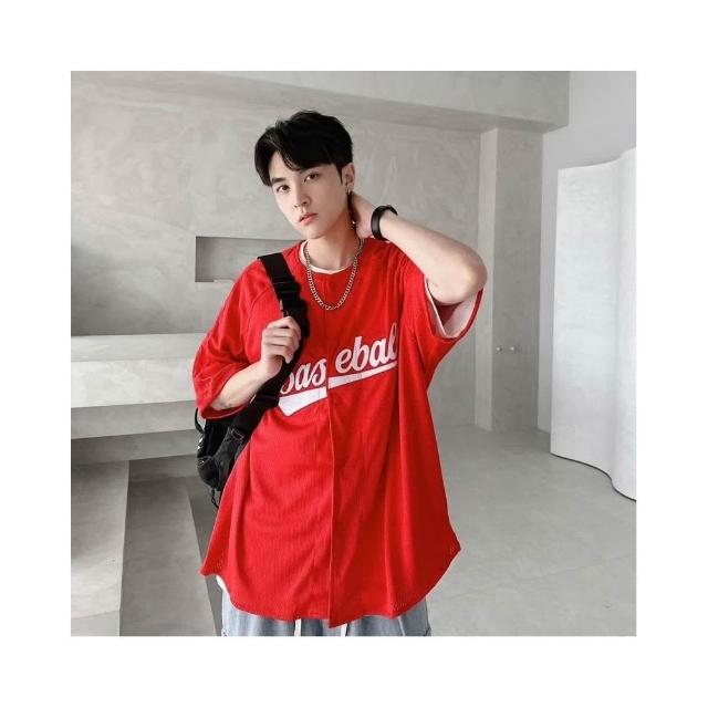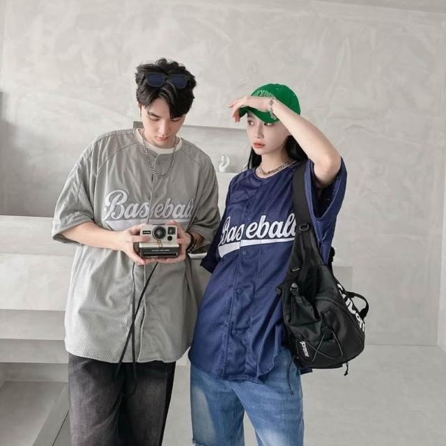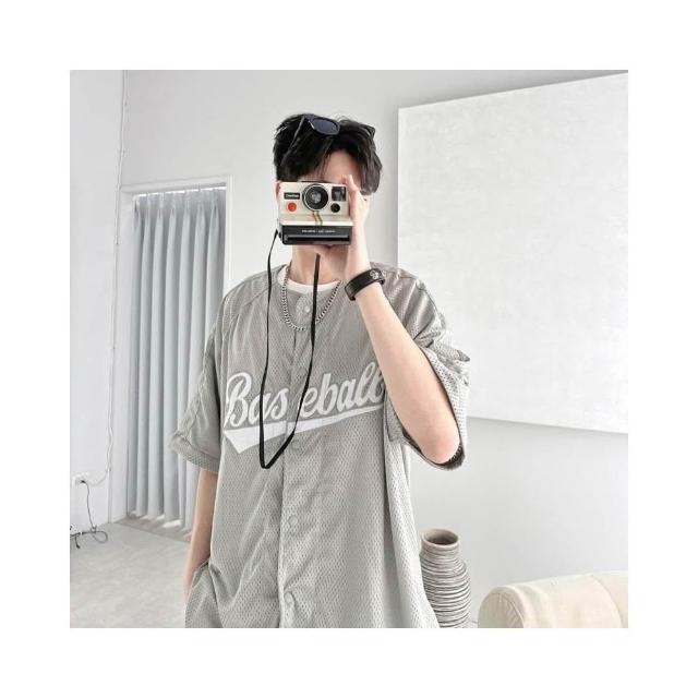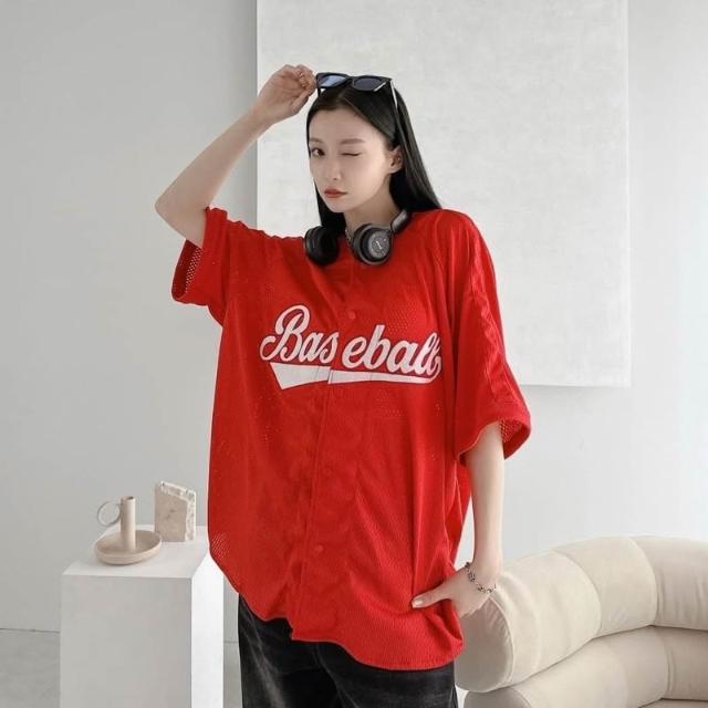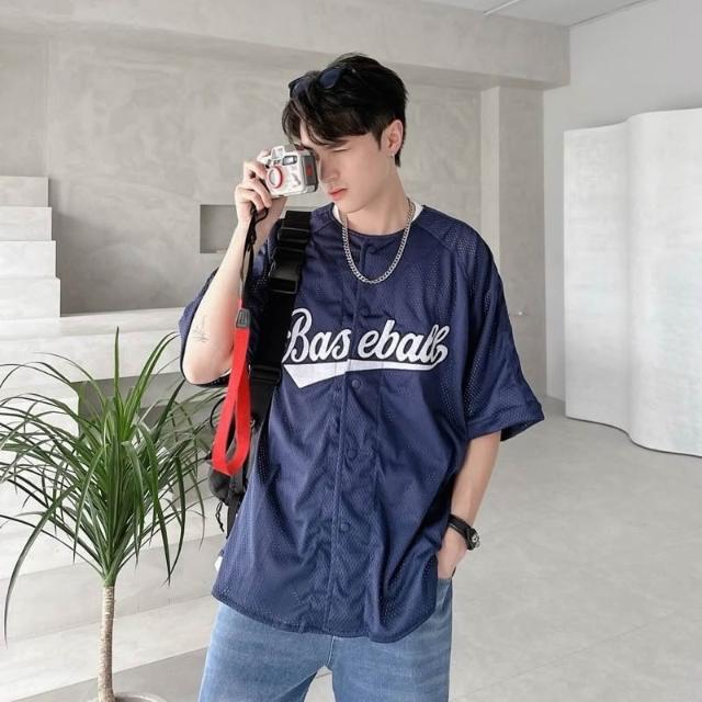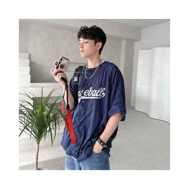 韓國 美式 棒球風 球衣 字母 刺繡 網眼 開扣 親膚 透氣 街頭 運動風 百搭 潮流 情侶 短袖 襯衫