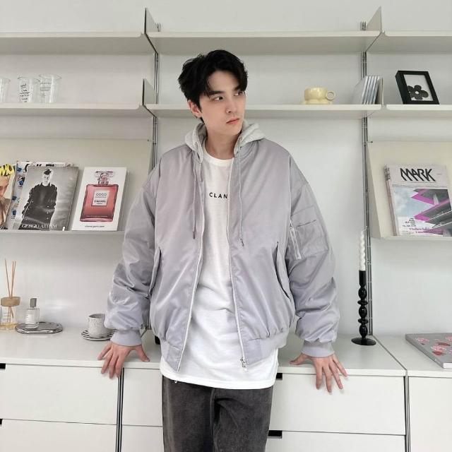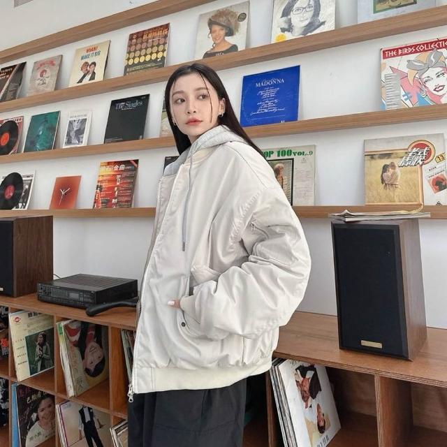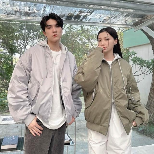 韓國 厚磅 內鋪棉 撞色帽 連帽 飛行夾克 素面 防風 防潑水 潮流 百搭 情侶 鋪棉外套 連帽外套 外套