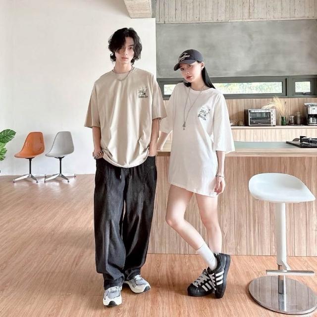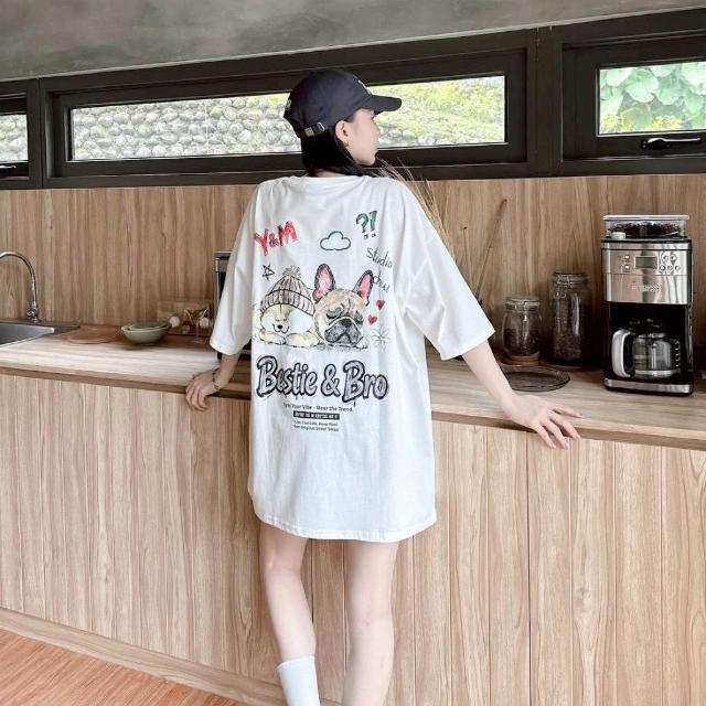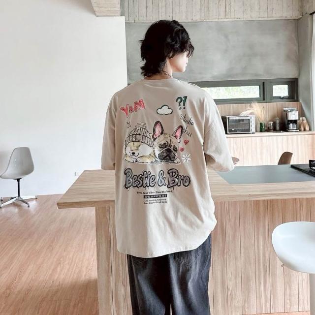 JES韓國 質感 手繪感 塗鴉 可愛 法鬥犬 柴犬 插圖 印花 親膚 潮流 百搭 情侶 短袖 上衣 短T