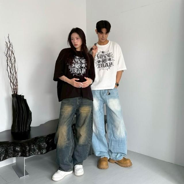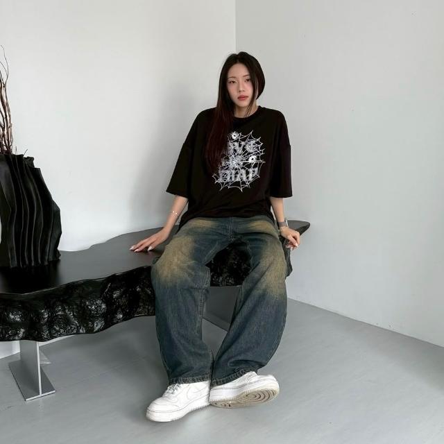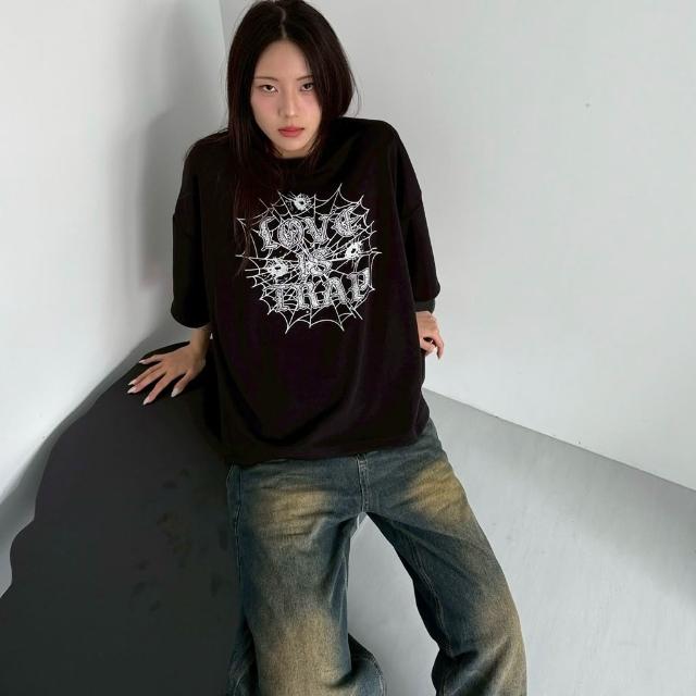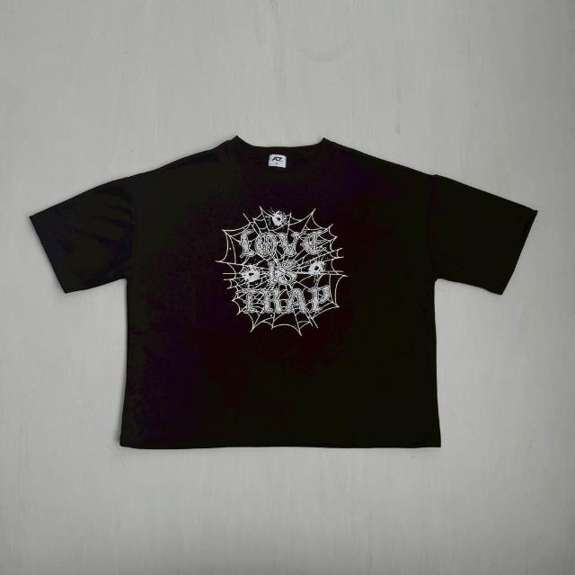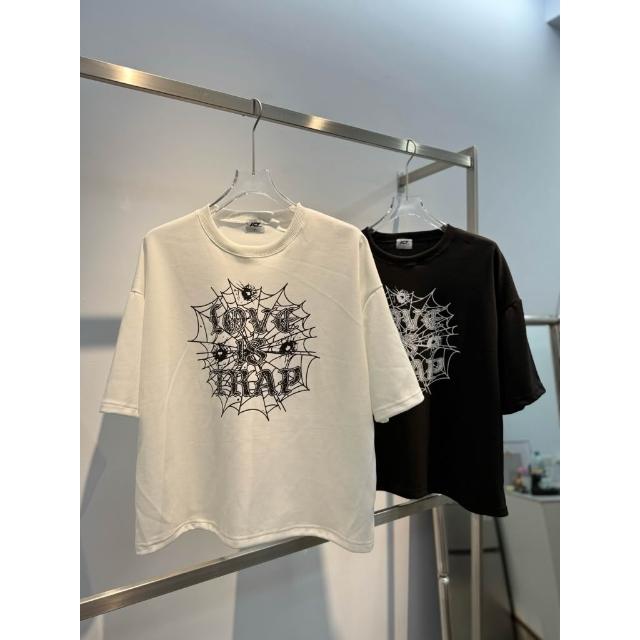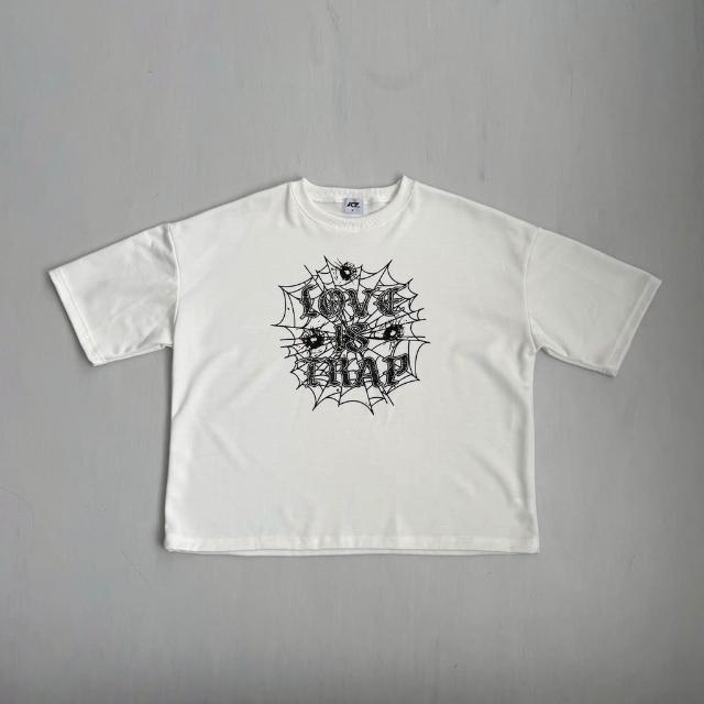JES韓國 美式 Boxy 短寬 短版 版型 蜘蛛網 字母 插圖 印花 個性 街頭 潮流 百搭 短版 短袖 短T