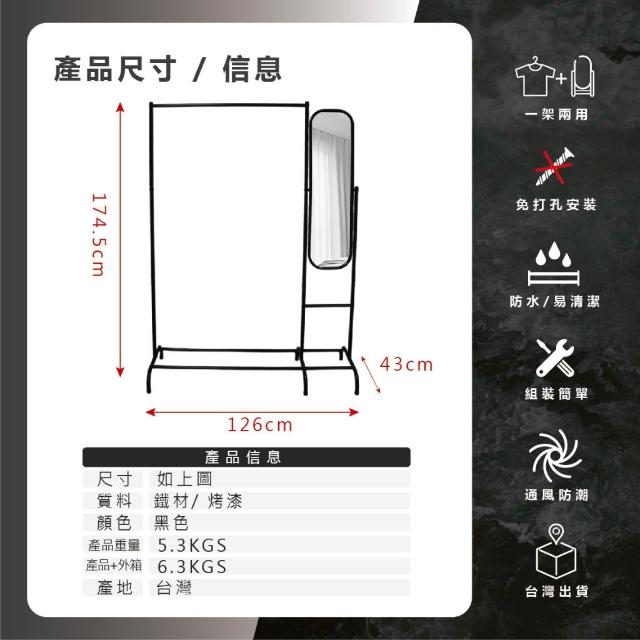 黎瓦家居 多功能單桿鏡架 全身鏡 衣架 衣架鏡 全身鏡 掛衣架 落地鏡 化妝鏡 立鏡 穿衣鏡 置物架