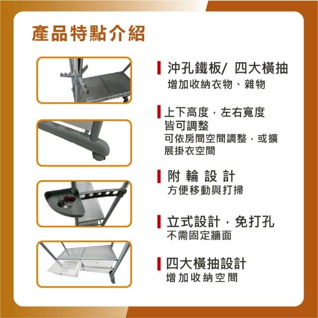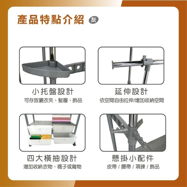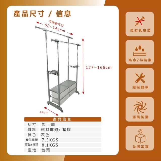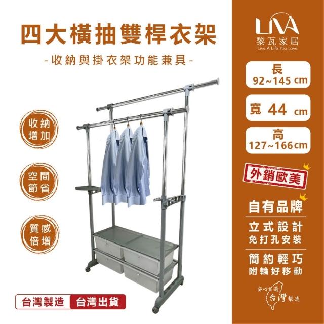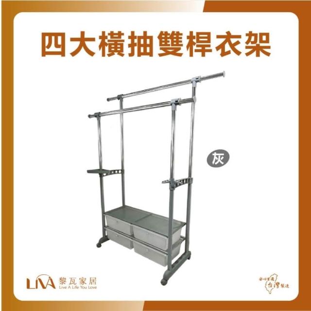 全館免運台灣製黎瓦家居 四大橫抽雙桿衣架 吊衣架 掛衣架 收納便利 可伸縮掛衣架 衣架 抽屜衣櫃 diy衣架