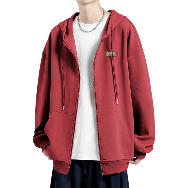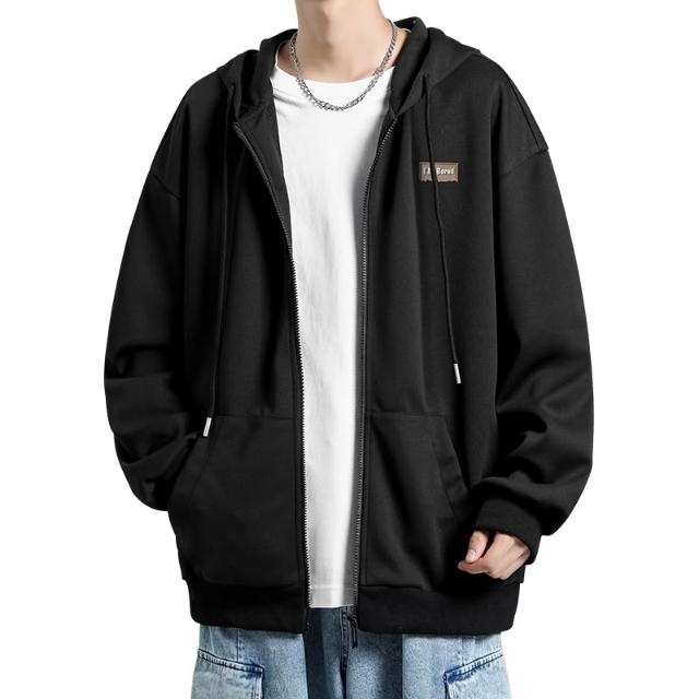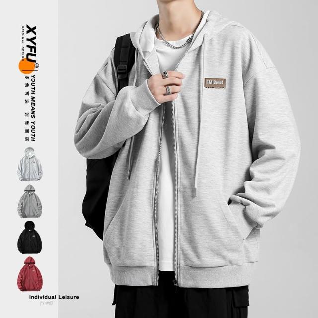 連帽衛衣男春秋潮牌寬鬆簡約修身純色開衫外套韓版上衣小眾設計感